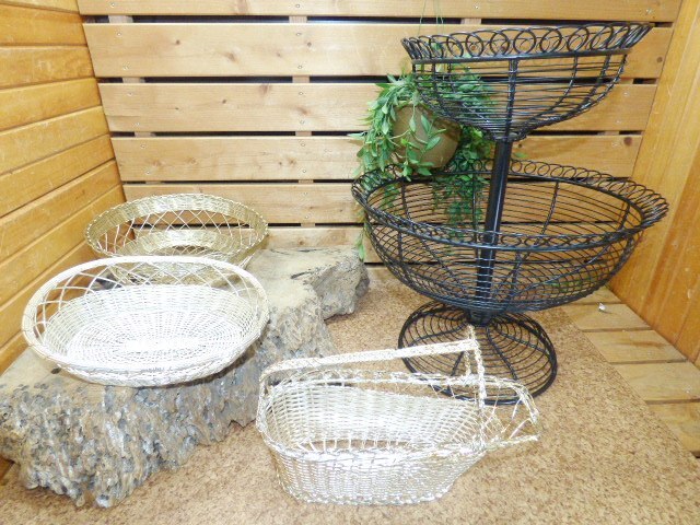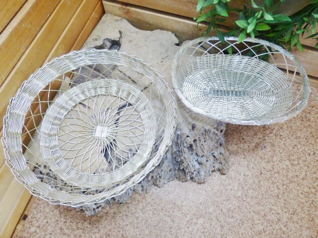こちらは120サイズでの発送を予定しております。 送料など詳細は「梱包・発送について」欄に記載しておりますので、そちらをご確認ください。 黒いワイヤーラック(約):直径36×H40cm 金色の丸型(約):直径23.5×H7.5cm など、詳細は写真でご確認ください。 ※すべてのお品のサイズを測ってはいませんので、上記サイズを参考にご考慮ください。 写真のものがすべてです(ワイヤーバスケット以外のものはイメージのため、付属しません) こちらは中古品です。 傷や汚れなど、写真をご確認の上での入札をお願いいたします。 詳細複数写真 ← Googleフォト リンク出来る場合写真はGoogleフォト 動画はYouTubeにリンクしています ※梱包について※ 緩衝材を使用した梱包をご希望の場合は60~100サイズまで100円、120~170サイズまで300円を頂戴いたします。 落札時にご希望の旨を必ずご連絡下さい。ご連絡がない場合は簡易梱包で発送致します。 簡易梱包の場合、追加費用はかかりません。 ※簡易梱包は緩衝材等を使用しませんのでご了承下さい。 素人なりに配慮した梱包を心掛けております。 しかしながら配送中にどうしても欠け、ひび、割れ等発生する場合がございますが免責とさせて頂き、返金等は致しかねますのでご了承・ご了解の上ご入札下さい。 詳しくは梱包・発送についてをご確認下さい。 商品ランク(ランクの記載のない商品もございます) A:新品・未使用品。 B:未使用に近い状態です。 C:中古品ですが目立った傷や汚れありません。 D:中古品の為、やや傷や汚があります。 E:中古品の為、傷や汚れ等の使用感が多数あります。 F:全体的に状態が悪い。 ☆個人での主観評価となりますので参考程度にしてください。 | ||||||||||||||||||||||||||||||||||||||||||||||||||||||||