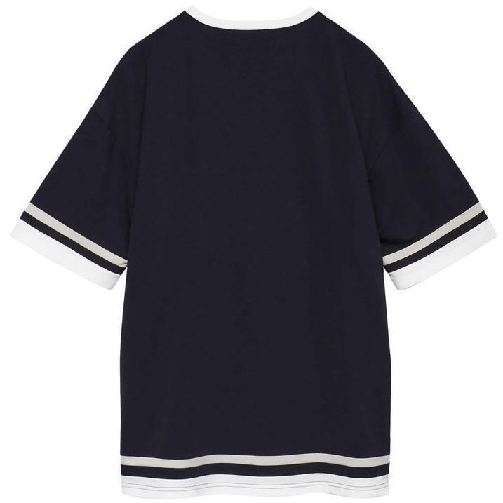 ■袖口と裾にバイカラーアクセントを加えたデザインオーバーシルエット半袖カットソー