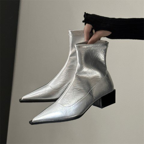 ポインテッドトゥ ショートブーツ ラフ 女性ブーツ 【39】24.5cm ブラック