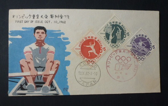 東京オリンピック募金   第3次   3種貼   初日カバー    画像の通り        美品 。