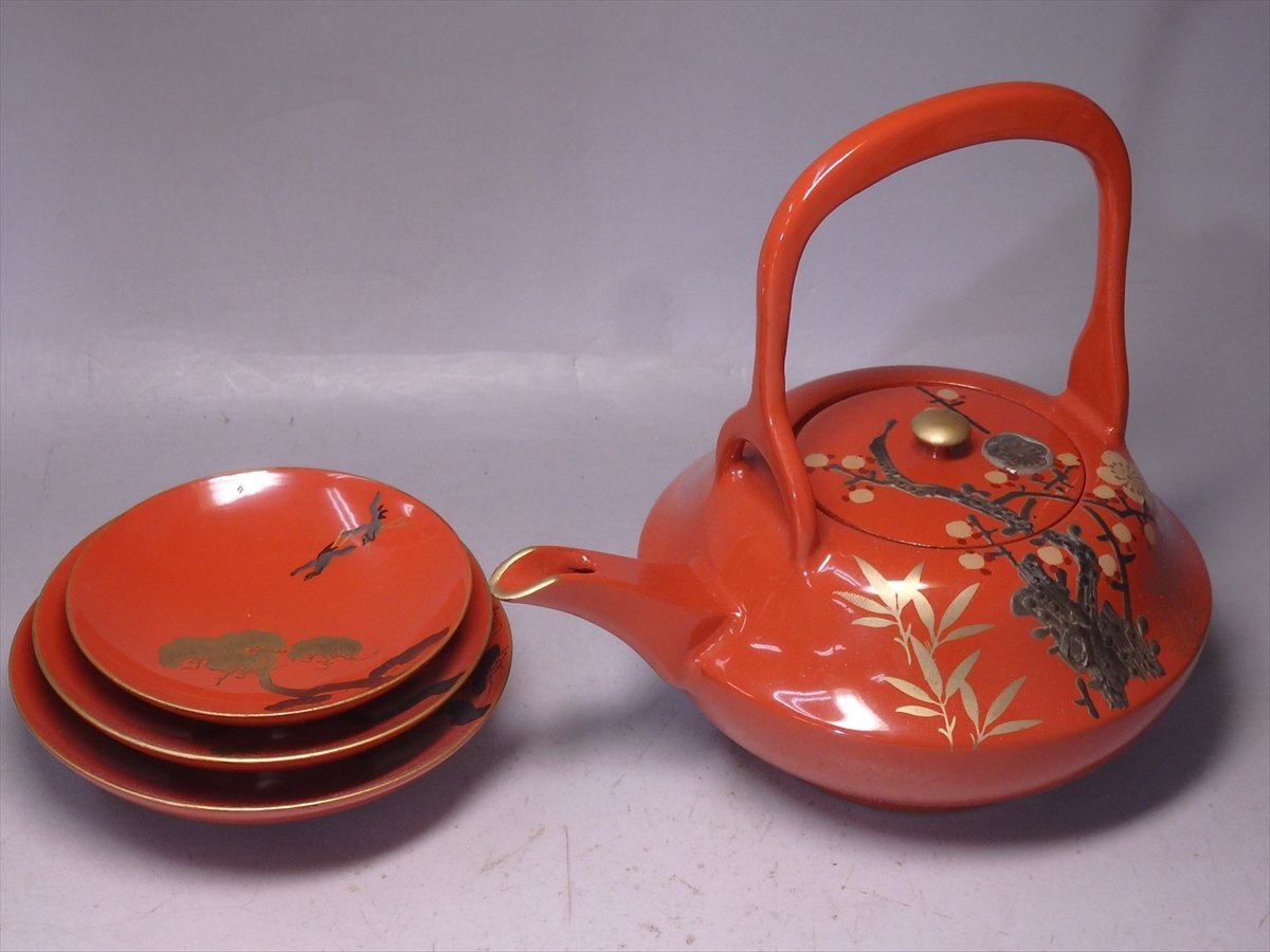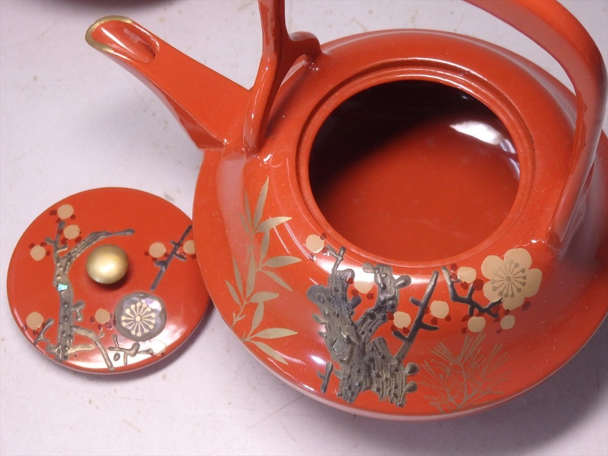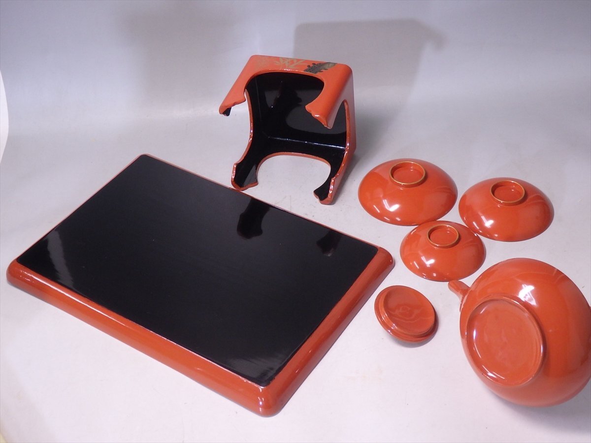 ★螺鈿入り【朱塗り 屠蘇器(木製)レトロ】銚子・三段盃・盃台・屠蘇台 正月 おせち料理 和食器 酒器 置物 飾り 家具 小道具