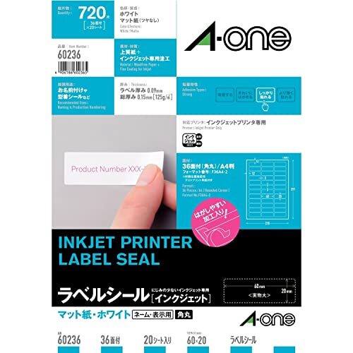 エーワン ラベルシール インクジェット 36面 20シート 60236