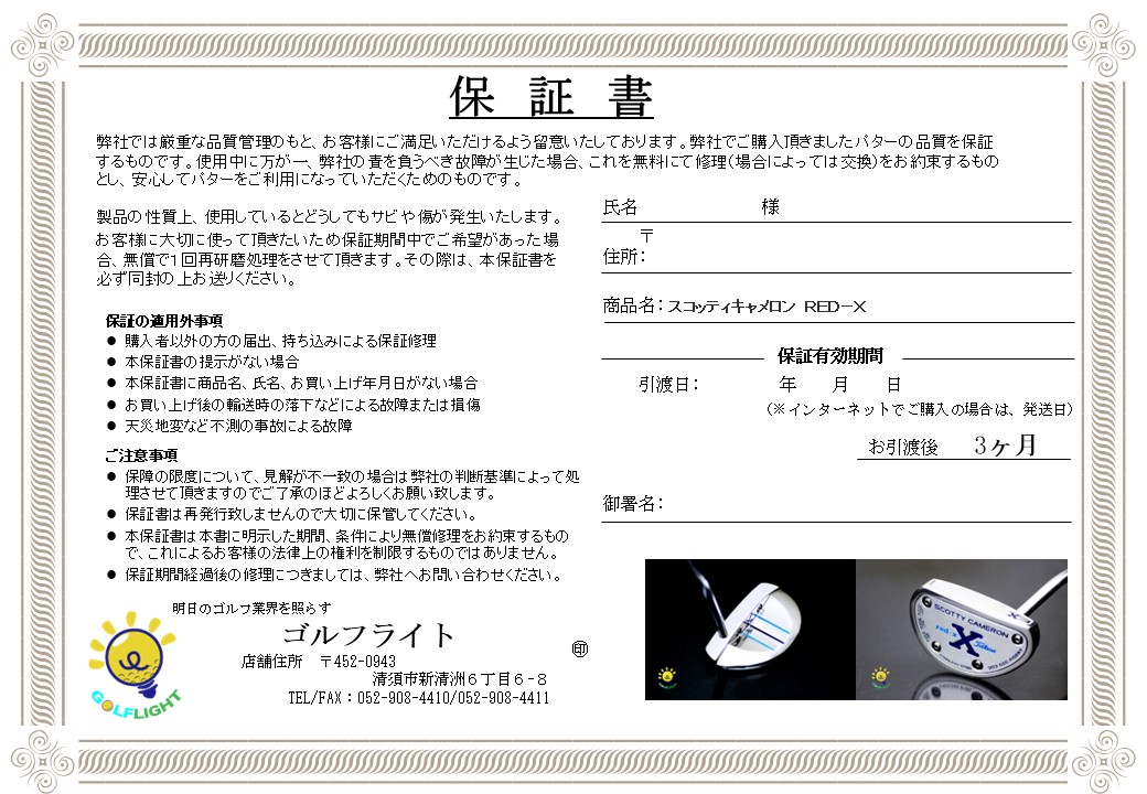| モデル | スコッティキャメロン RED-X ミラー加工仕上げ | シャフト | 純正 |