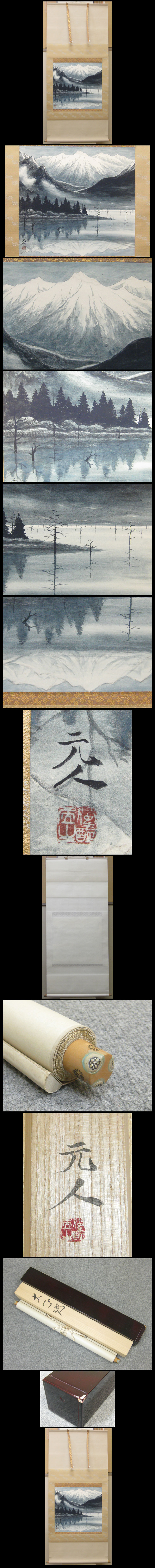 【心庵】掛軸 杉原元人 紙本「大正池」/肉筆 共箱 二重箱 真作 A891