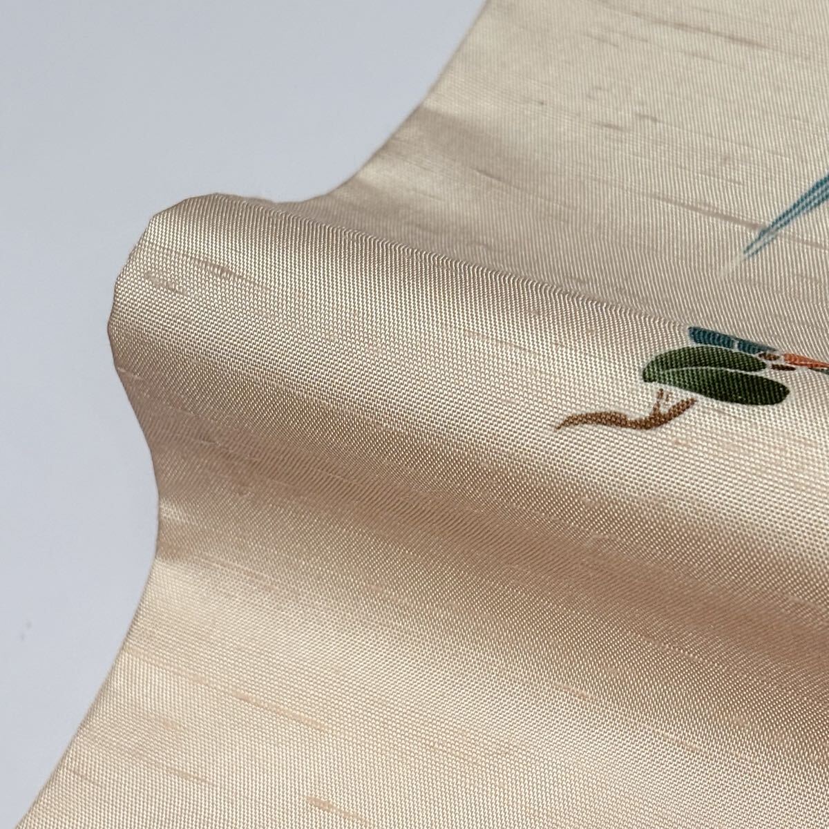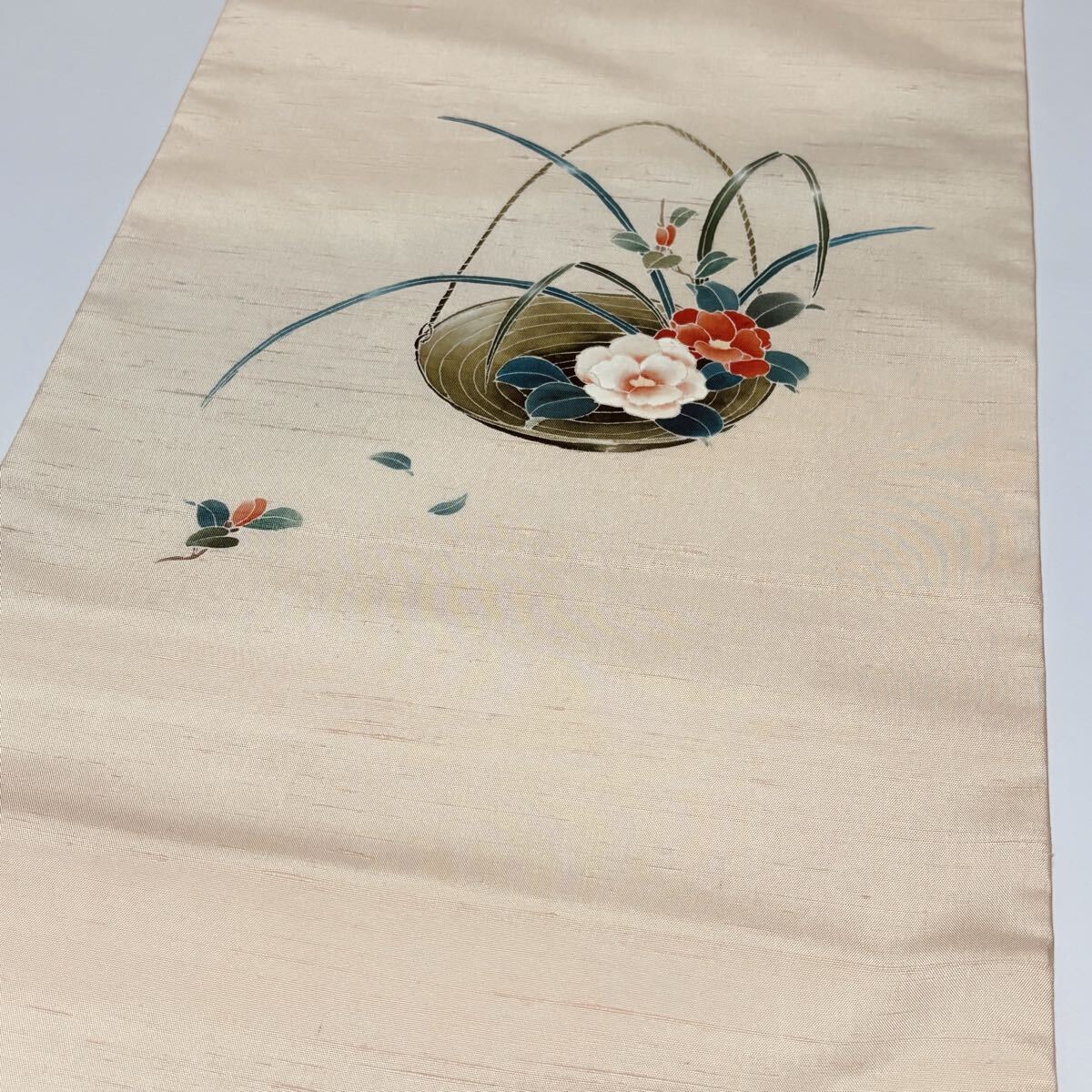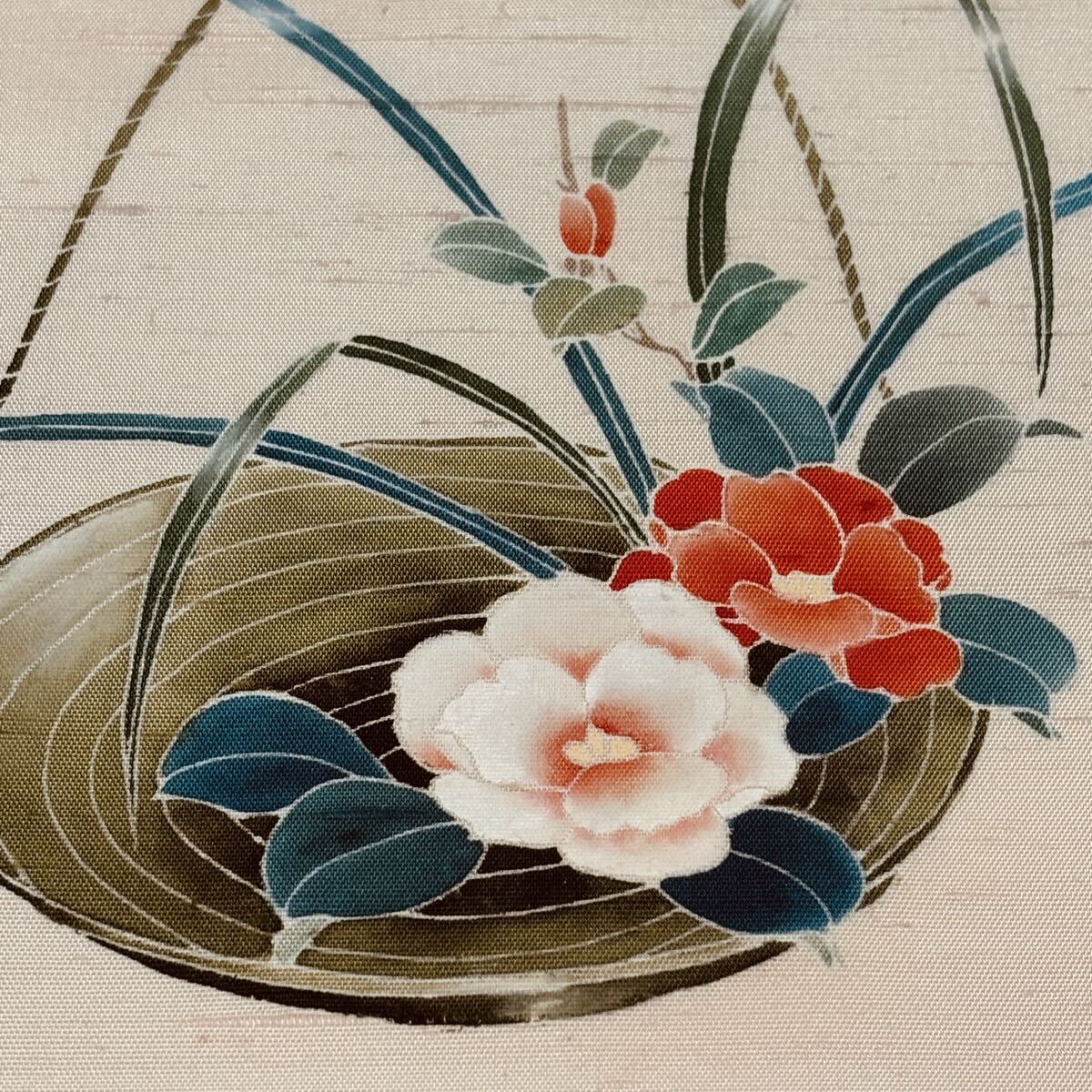 手描友禅による繊細で美しい花柄が魅力のデザイン。極上のクオリティを誇る牛首紬の名古屋帯です。