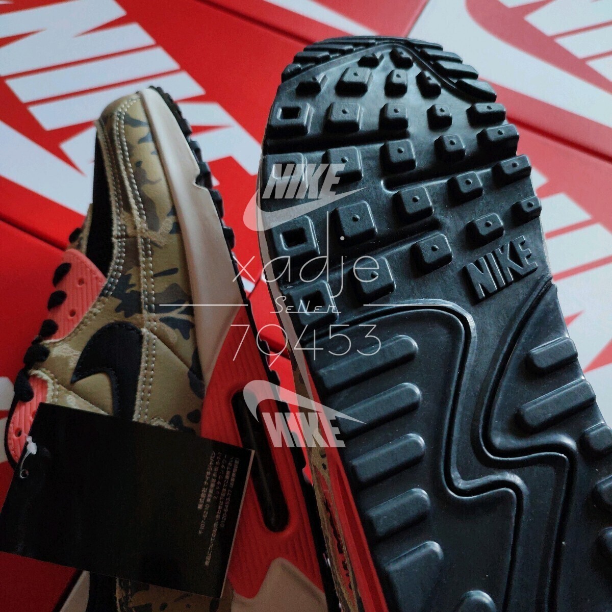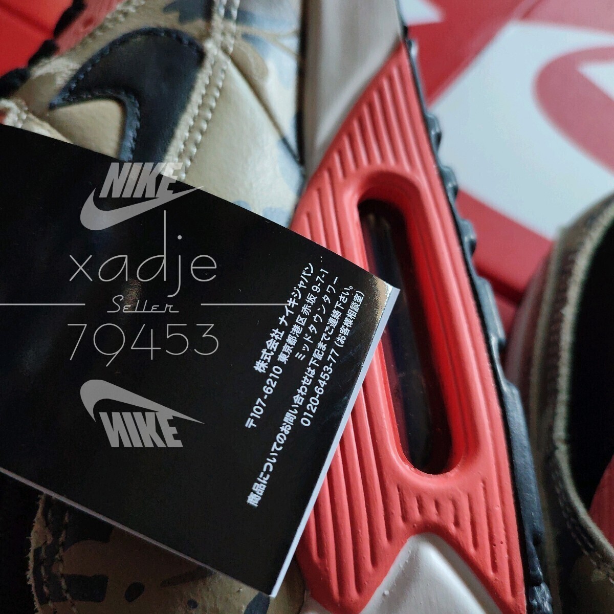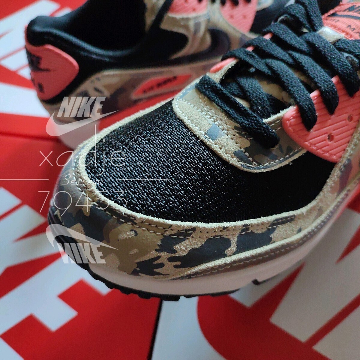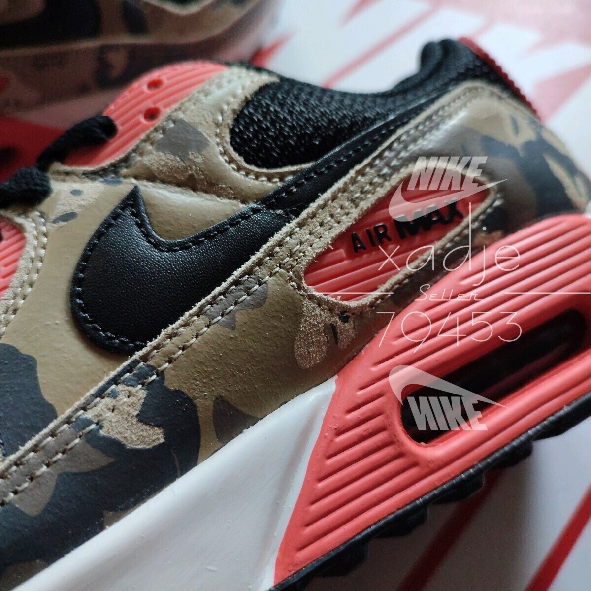 新品 正規品 NIKE ナイキ AIR MAX 90 PRM エアマックス 90 プレミアム 迷彩 CAMO ライトカーキ 黒 赤系 定価17600円 26.5cm US8.5 箱付き