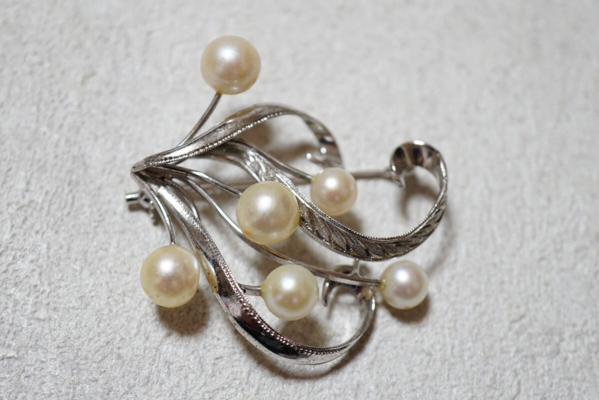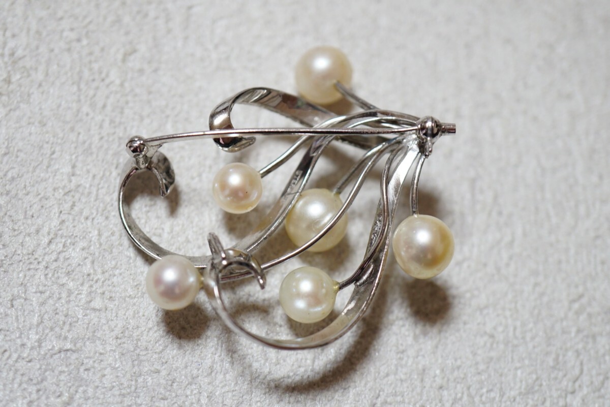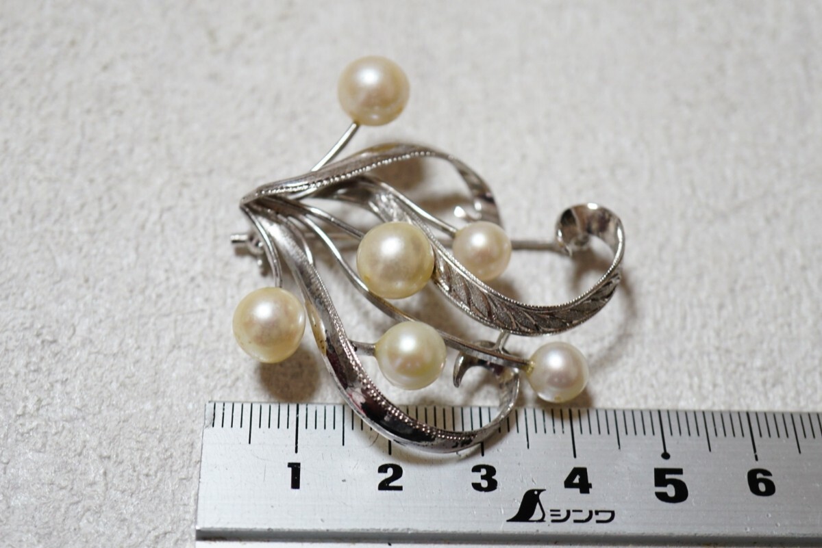 600 アコヤ真珠 本真珠 パール シルバー ブローチ ヴィンテージ アクセサリー STERLING刻印 冠婚葬祭 あこや 装飾品