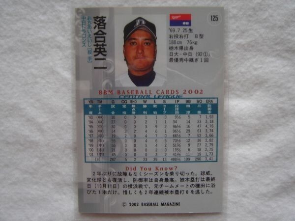 【BBM プロ野球カード 2002】No.125 落合英二 中日ドラゴンズ【トレーディングカード トレカ ベースボールマガジン社】