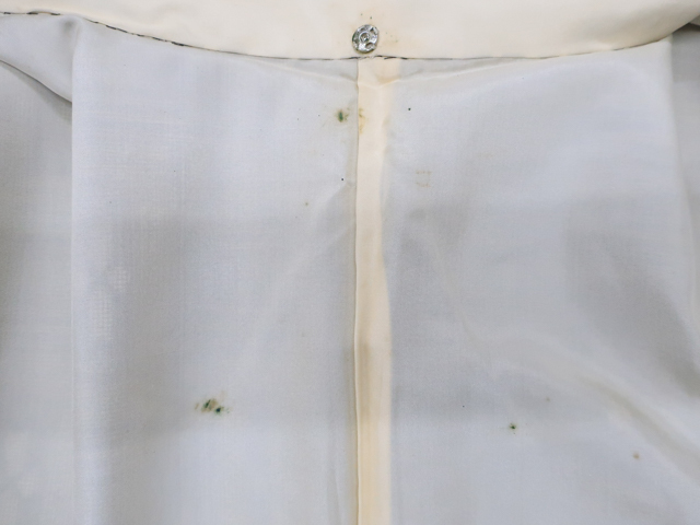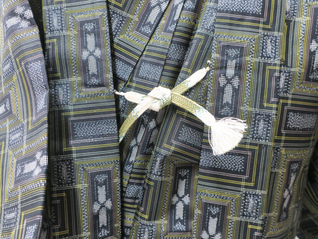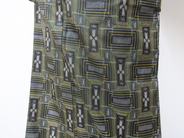リサイクル商品のため、着物の裏地にほつれ、八掛の裾や衿に薄汚れ、胴裏にスナップボタンによる汚れがございます。 また、羽織の羽裏にシミがございますが、着用可能なお品です。 地色は、紺・黄色です。 1枚目の画像が近いお色かと思われます。 素材は正絹です。 |