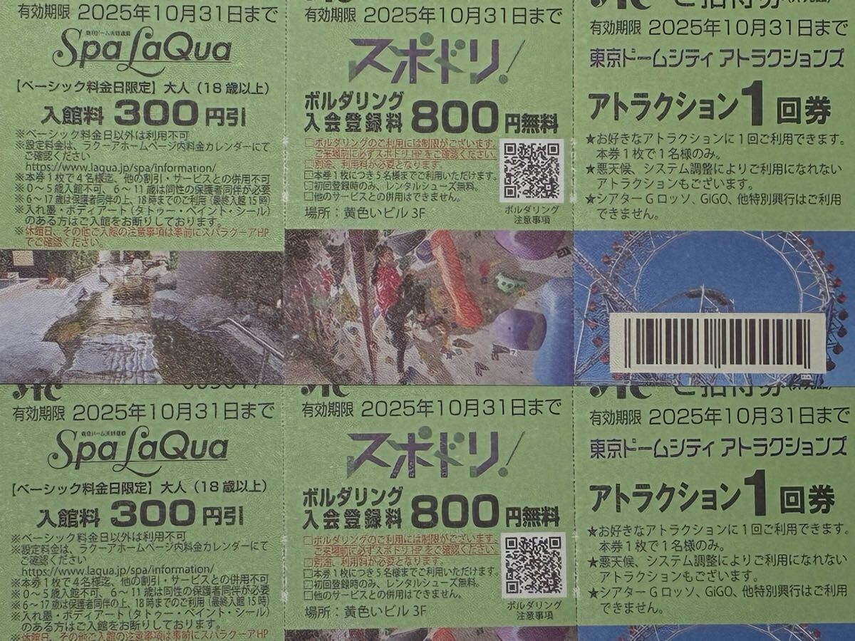 ☆★ 東京ドームシティアトラクションズ16枚セット 2025年10月31日まで ★☆
