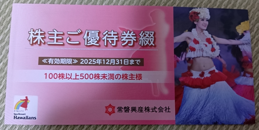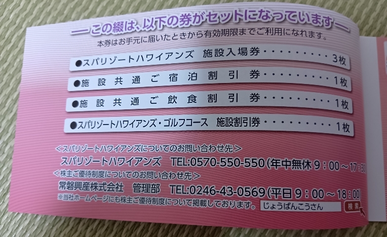 スパリゾート ハワイアンズ 12/31 株主ご優待券綴 1冊 冊子 未使用 いわき 福島 割引 施設入場券3枚 クーポン 宿泊 飲食 ゴルフ 常磐興産