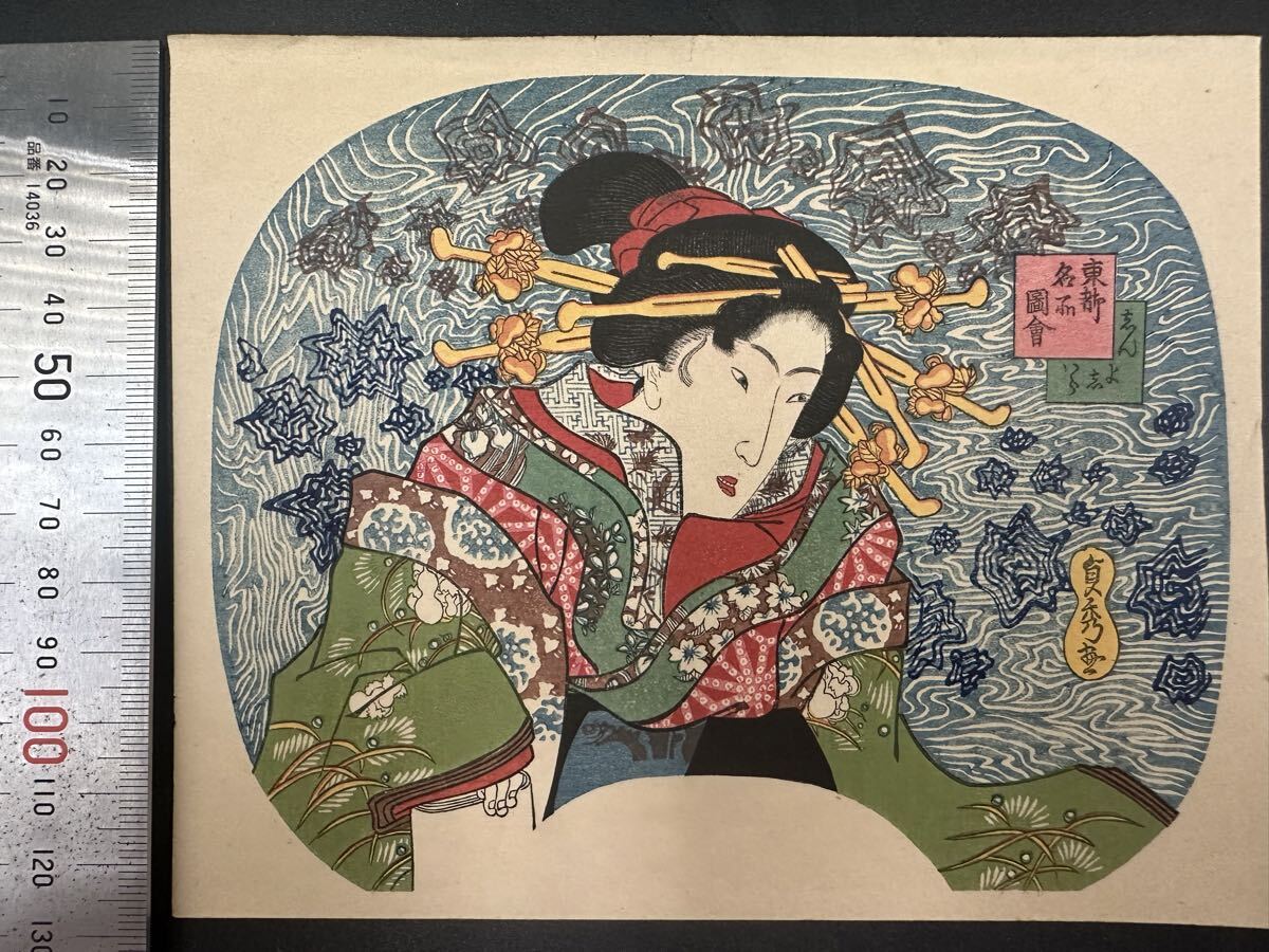 【真作】大正期 浮世絵木版画 歌川貞秀「東都名所図会 」美人画 小判 錦絵 保存良い