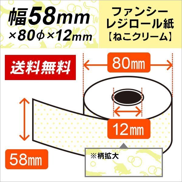 イラスト付 感熱ファンシーレジロール紙 58×80×12 【ねこ・クリーム】 50巻