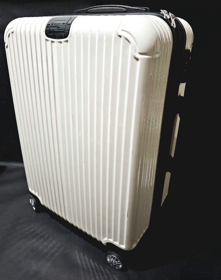商品説明 旅行や出張時にオススメの大容量スーツケースです。 旅行の他にも防災バッグとしても便利にお使い頂けます。 詳細 ●サイズ:奥行28cm、幅46.5cm、高さ67.5cm ●ランク:Cランク ●コンディション:カギが欠品しております。 タイヤや外側全体的に傷、汚れがあります。 |