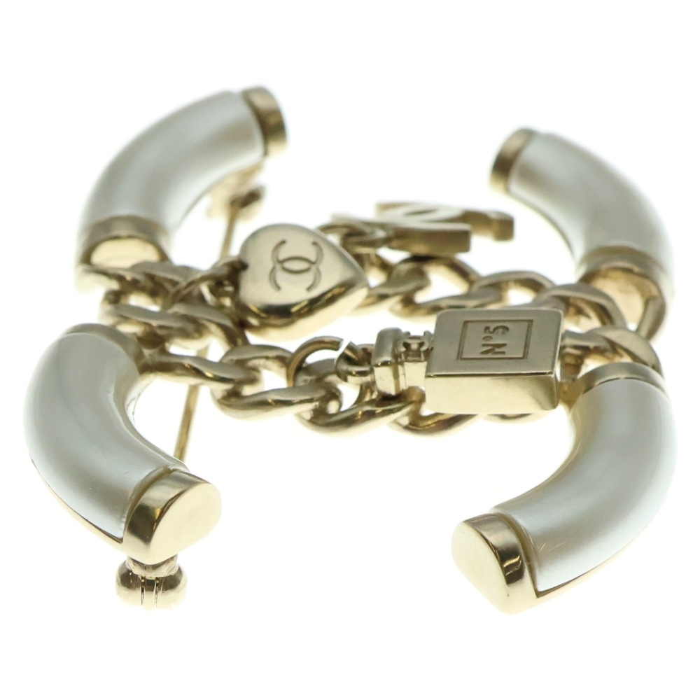 CHANEL シャネル ビッグココマーク パフューム×ハート×ココマークチャーム ブローチ ピンバッジ ホワイト×ゴールド GP B18B