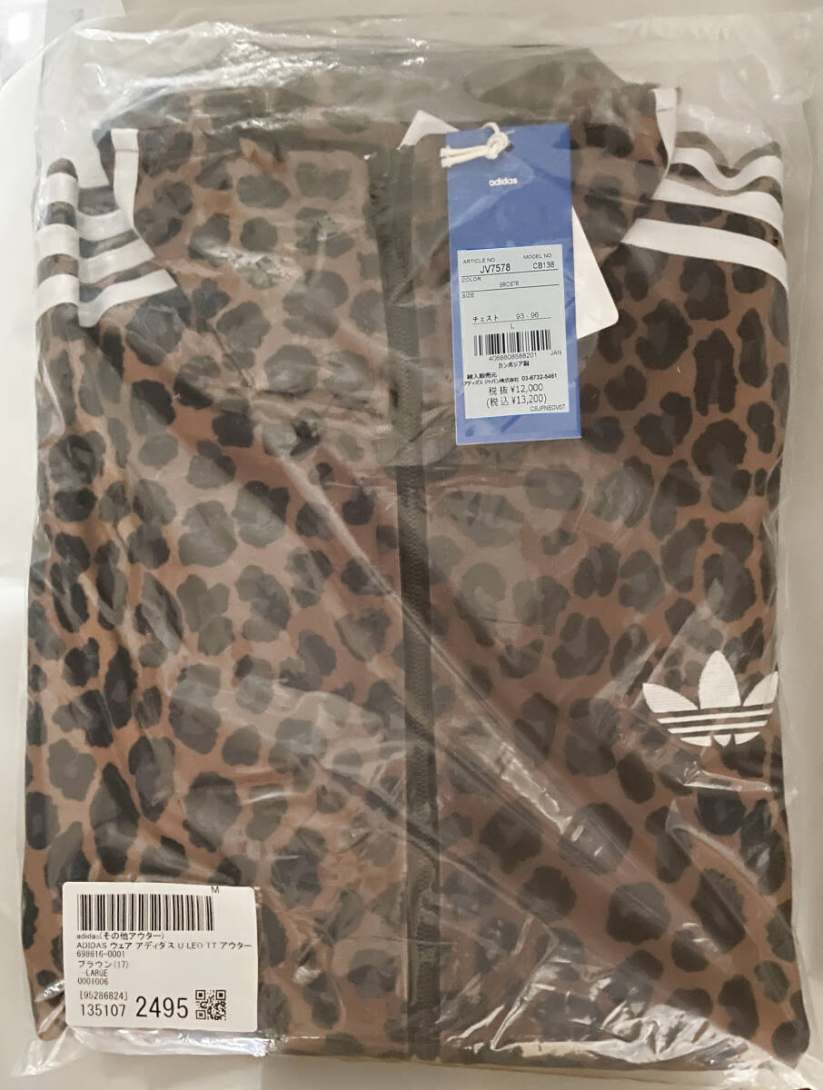 新品 未使用。2025年発売。アディダス オリジナルズ レオパード トラックジャケット。adidas Originals BRONZESTRATA JV7578 U LEO TT LEOPARDアディダス・ジャパン株式会社の国内正規品。一部のショップのみで限定発売されたため販売数が少なく、完売したため現在では入手困難なレアな商品です。◎存在感抜群のヒョウ柄デザイン◎胸元に刺繍のトレフォイル(三つ葉)のロゴ◎ジッパー付きサイドポケットx2●表記サイズ:XL●サイズ:胸囲:125cm、着丈:67cm、ゆき89.5cm※多少の誤差はご了承ください。●素材:ポリエステル70%、コットン30%●カラー:ブラウン●付属品:アディダス・ジャパン紙製タグ○掲載画像は、各自のデバイスの設定により色や素材感が若干異なって見える場合がありますのでご了承下さい。写真と説明でご不明な点はできるだけ質問にお答えしますので、思い描いていたイメージと違うといったお客様都合による返品は不可です。○すり替え防止のため、返品は一切受け付けません。