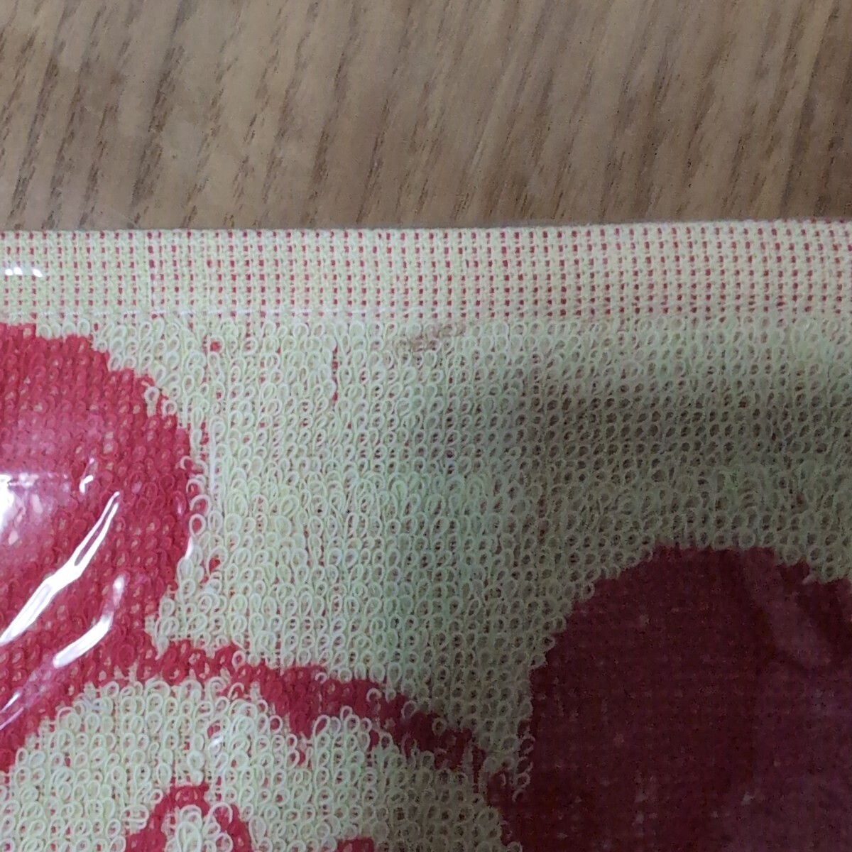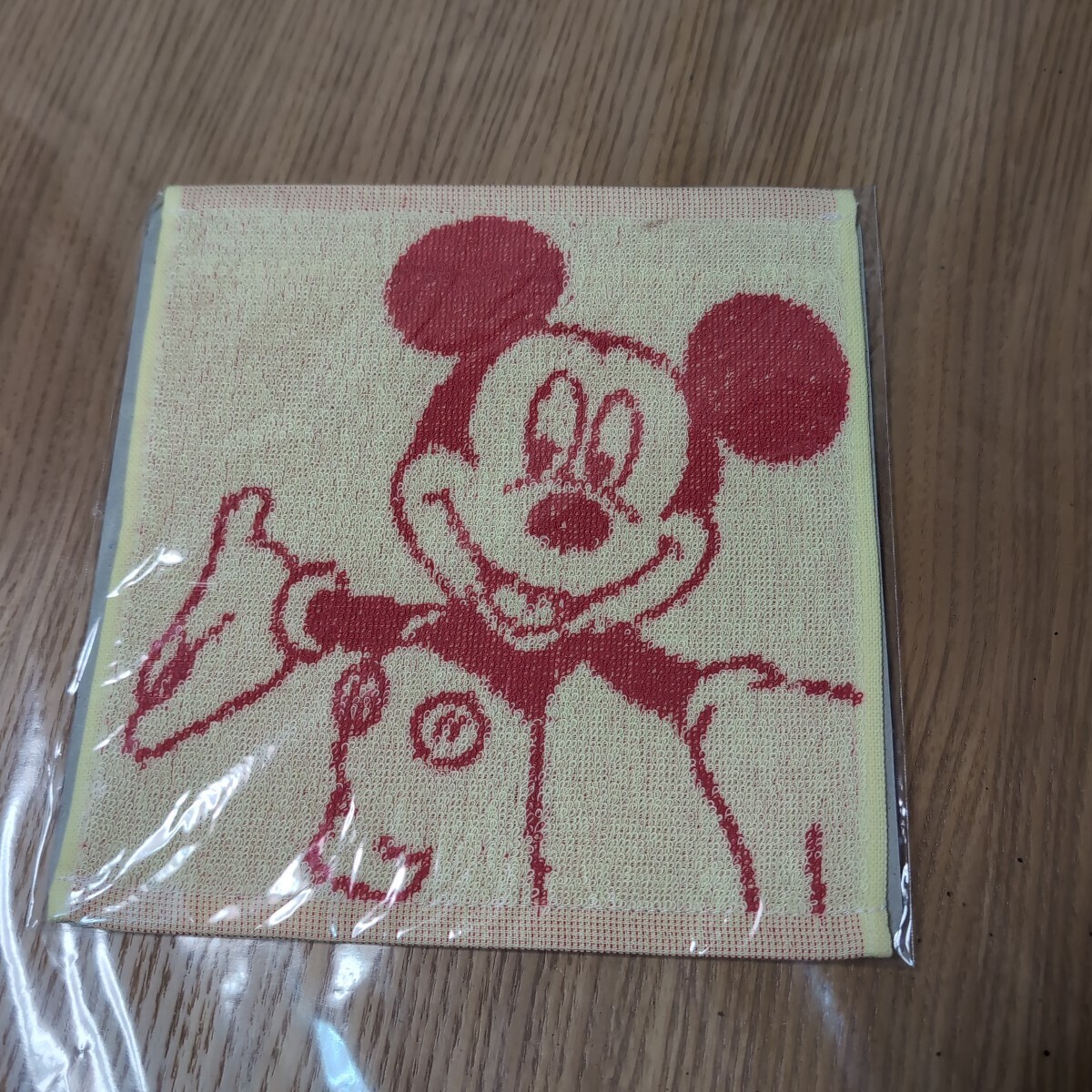 ミッキーマウスの赤いイラストが特徴的なタオル