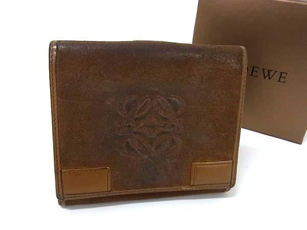 LOEWE ロエベ アナグラム スエード×レザー 二つ折り 財布 ウォレット 札入れ 小銭入れ レディース ブラウン系 DI8367