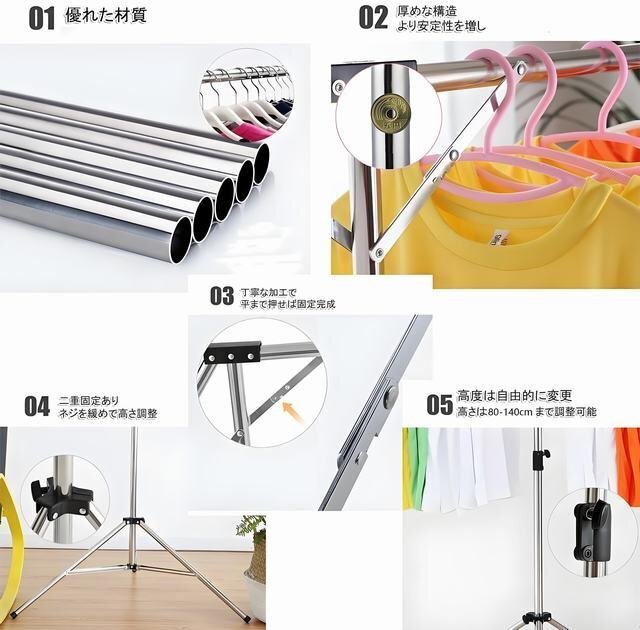【省スペース】:折り畳み式と伸縮式デザインがあって、敷地空間はさらに小さく、省スペースで大量な物を干すことができます。