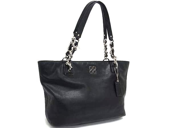 1円 COACH コーチ 16409 オプアート レザー チェーン トートバッグ ショルダーバッグ 肩掛けかばん レディース ブラック系 FP7443