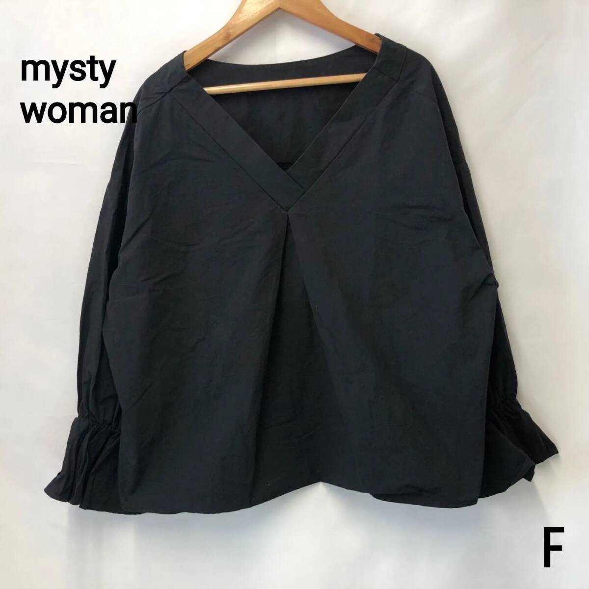 mysty woman ミスティウーマン レディース トップス ブラウス 長袖 ブラック Fサイズ