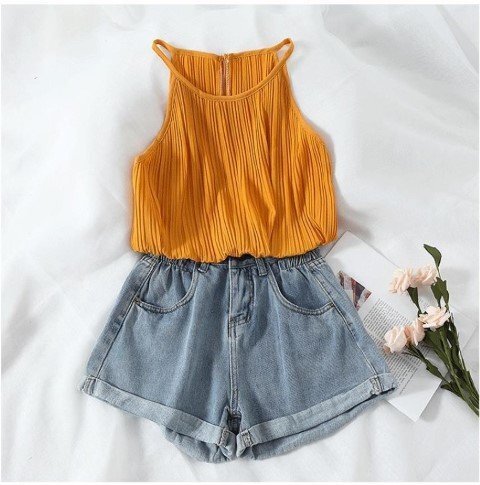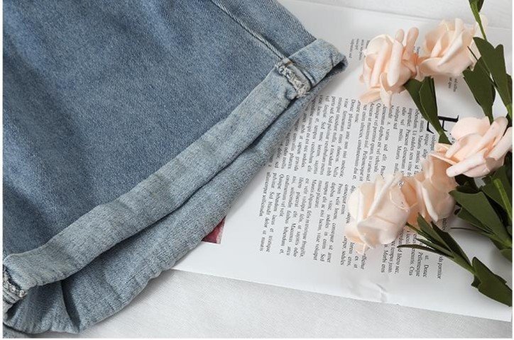 ・ウエストの位置を高く見せスタイルアップできるハイウエスト。可愛いロールアップデザインです。