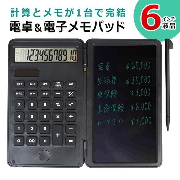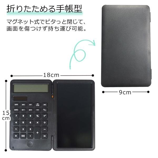 12桁電卓付き 電子メモパッド 6インチ デジタル メモ帳 折りたたみ メッセージ 伝言板 子供 送料無料 3M◇ 電卓付電子メモパッド