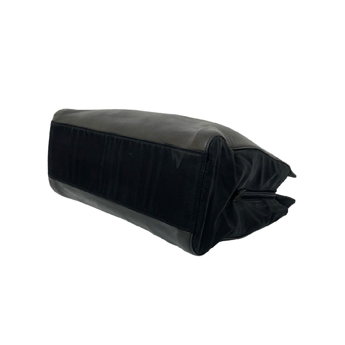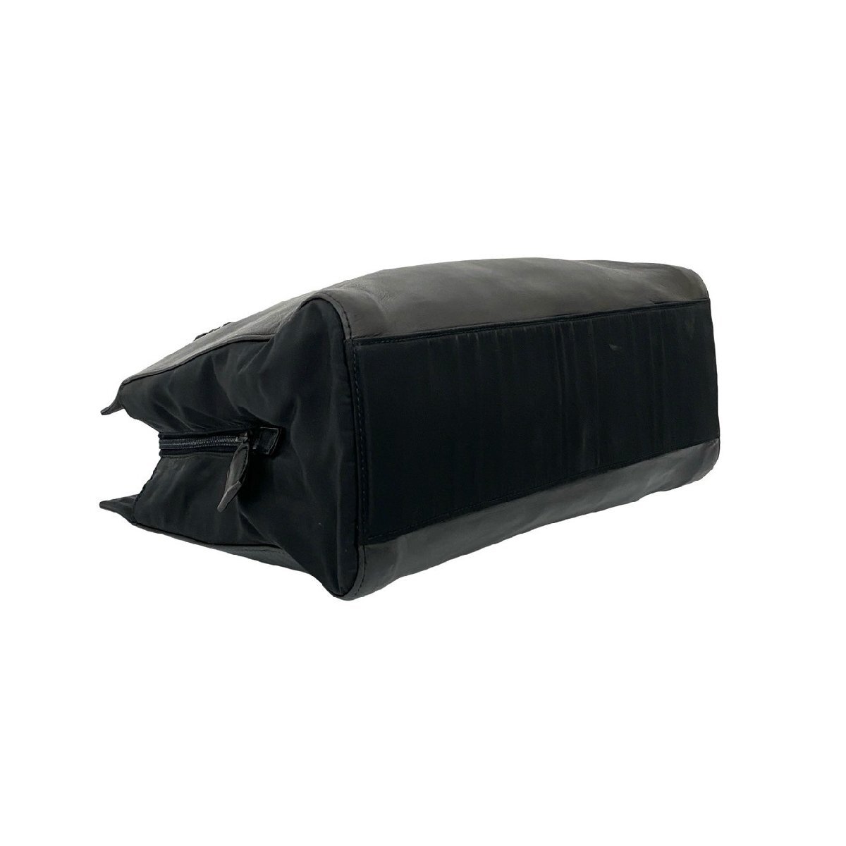 極 美品 カード付 PRADA プラダ ロゴ 型押し レザー 本革 ナイロン チェーン トートバッグ セミ ショルダーバッグ ブラック 30431