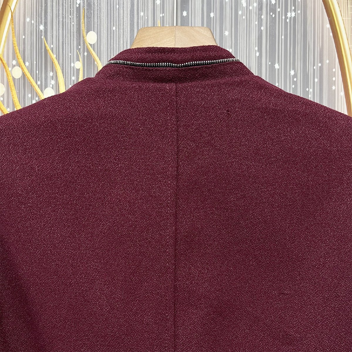 襟元にあしらわれたファスナーが、全体を単調に見せず、高級感を醸し出しています。フロントボタンをとめることで、抜け感のあるリラックスムード漂うスタイルが完成します。袖にもボタンがあり、こだわりのディテールです。内部には隠しポケットがあり、持ち歩く物を安全に収納できます。