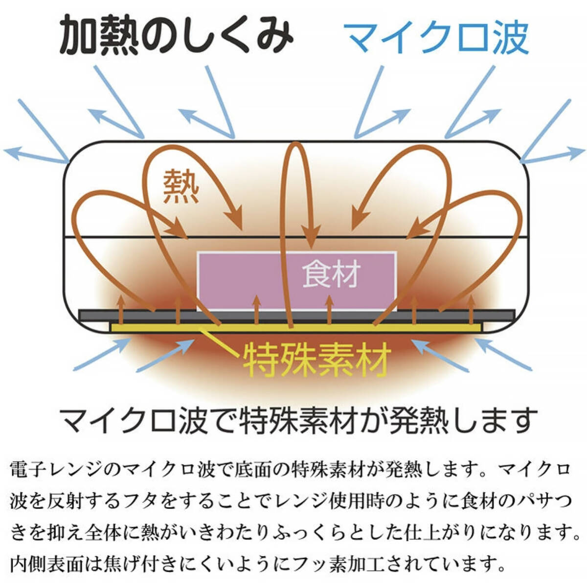 ■底面の特殊シリコーンゴムがマイクロ波を熱に変換、中はふっくら外はカリッと焼きあがる!