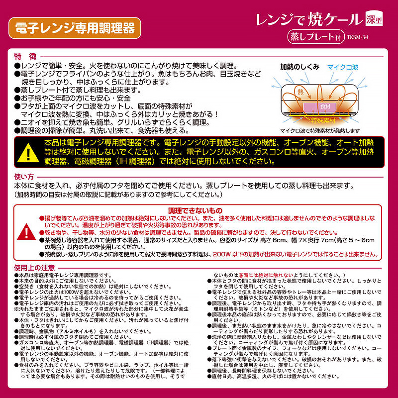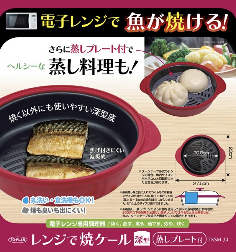新品未開封 東京企画販売 TO-PLAN 電子レンジ専用調理器 レンジで焼ケール 深型 TKSM-34 蒸しプレート付