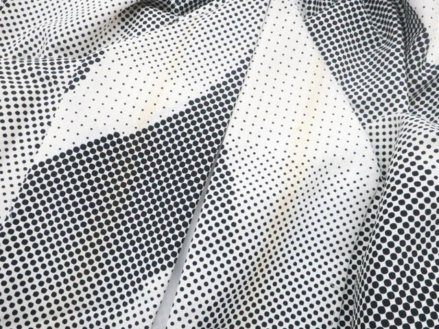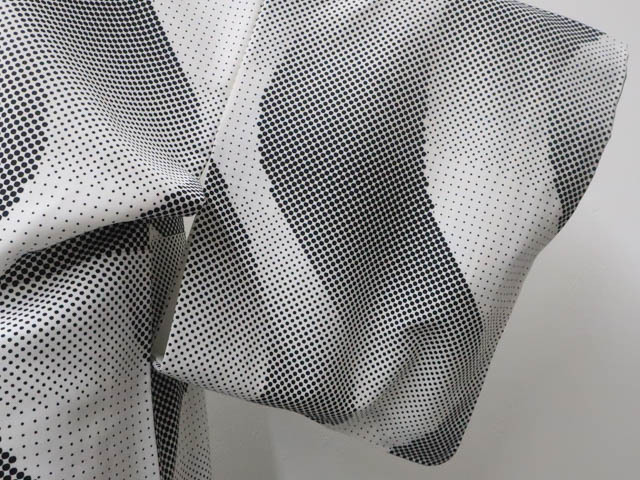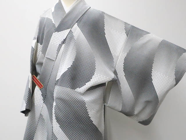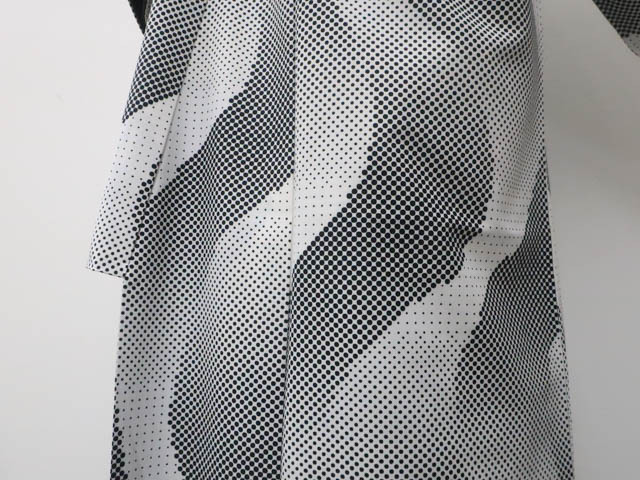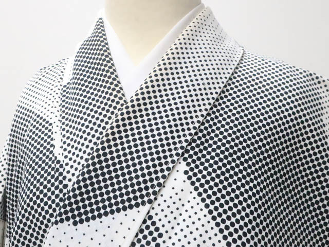 リサイクル商品のため、上衽・右袖・衿汚れがございますが着用可能なお品です。 地色は しろ ・黒です。 1枚目の画像が近いお色かと思われます。 素材は化繊です。 |