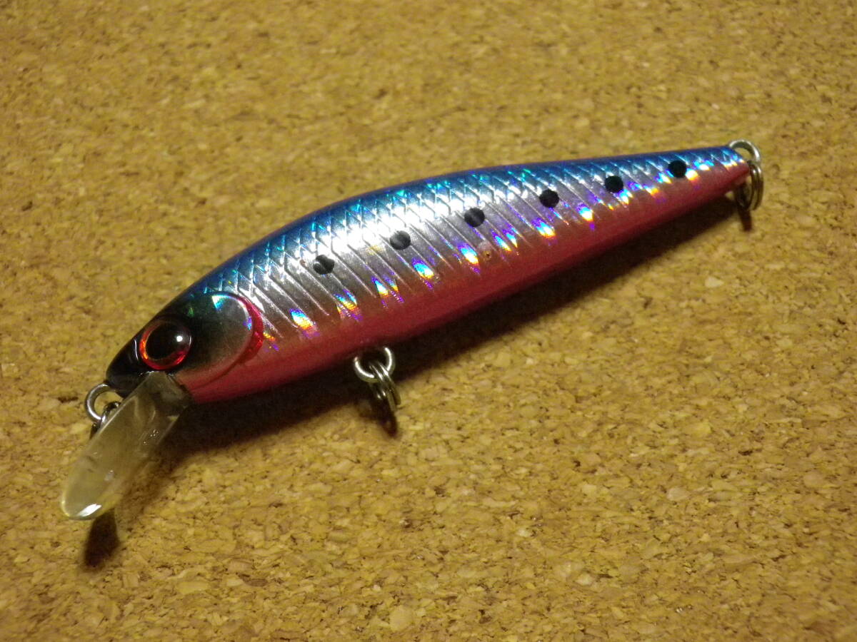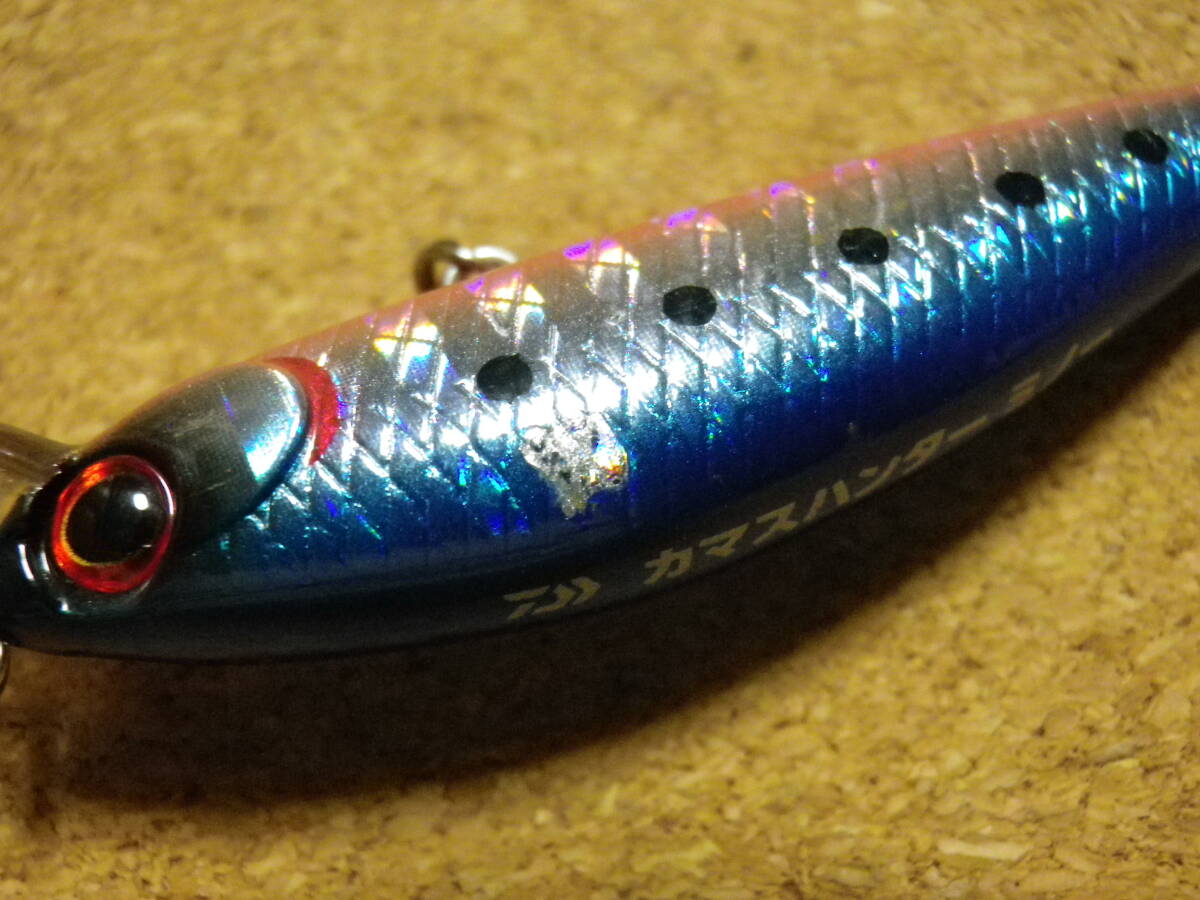 ダイワのカマスハンターミノー50Sです。サイズ:50mm、 自重:3.7g 、シンキング。●タングステンウエイト仕様のカマス・メッキ用ミノー![KAMASU HUNTER MINNOW 50S] ■タングステンウエイト採用&前方重心: タングステンウエイト採用。後方のウエイトは外しており、前方重心へと変更している。後方にウェイトが入っていると、スローリトリーブ時のアクションが弱くなってしまうので前方へウエイトを集中させている。 ■フォール姿勢: 前方重心-平行のフォール姿勢で巻き始めのレスポンスをアップ。●