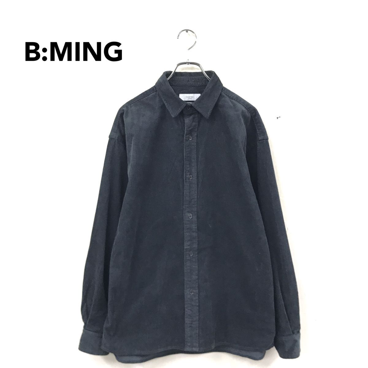 2O1779-T-N◆B:MING ビーミング ビームス コーデュロイシャツ ロングスリーブ◆sizeL ネイビー メンズ トップス コットン100