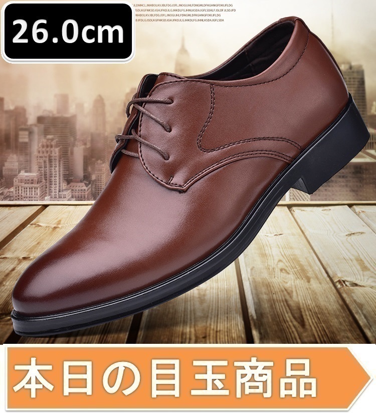 本日の目玉 ☆ メンズ ビジネス レザー シューズ ブラウン サイズ 26.0cm 革靴 靴 カジュアル 屈曲性 通勤 軽量 【226】