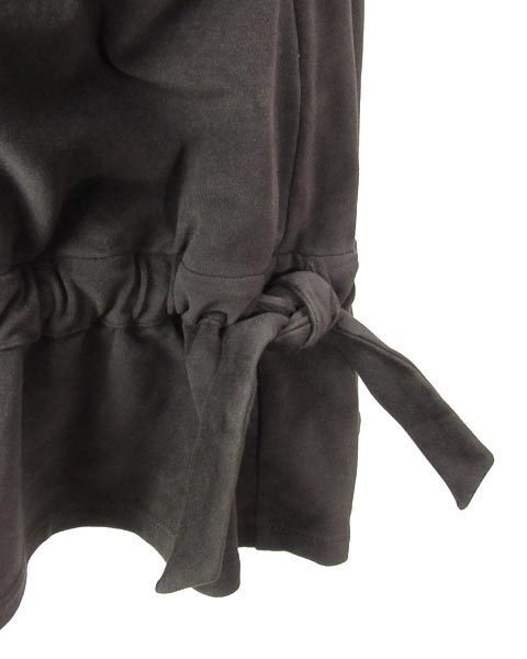 | 肌触りの良いスウェード調タッチのフェミニンなワンピース。裾の絞ったリボンがポイント。調節可能で、ふんわりコクーンにもAライン風にもして頂けます。1枚でも、インナーをプラスしても可愛いデザインです。 |