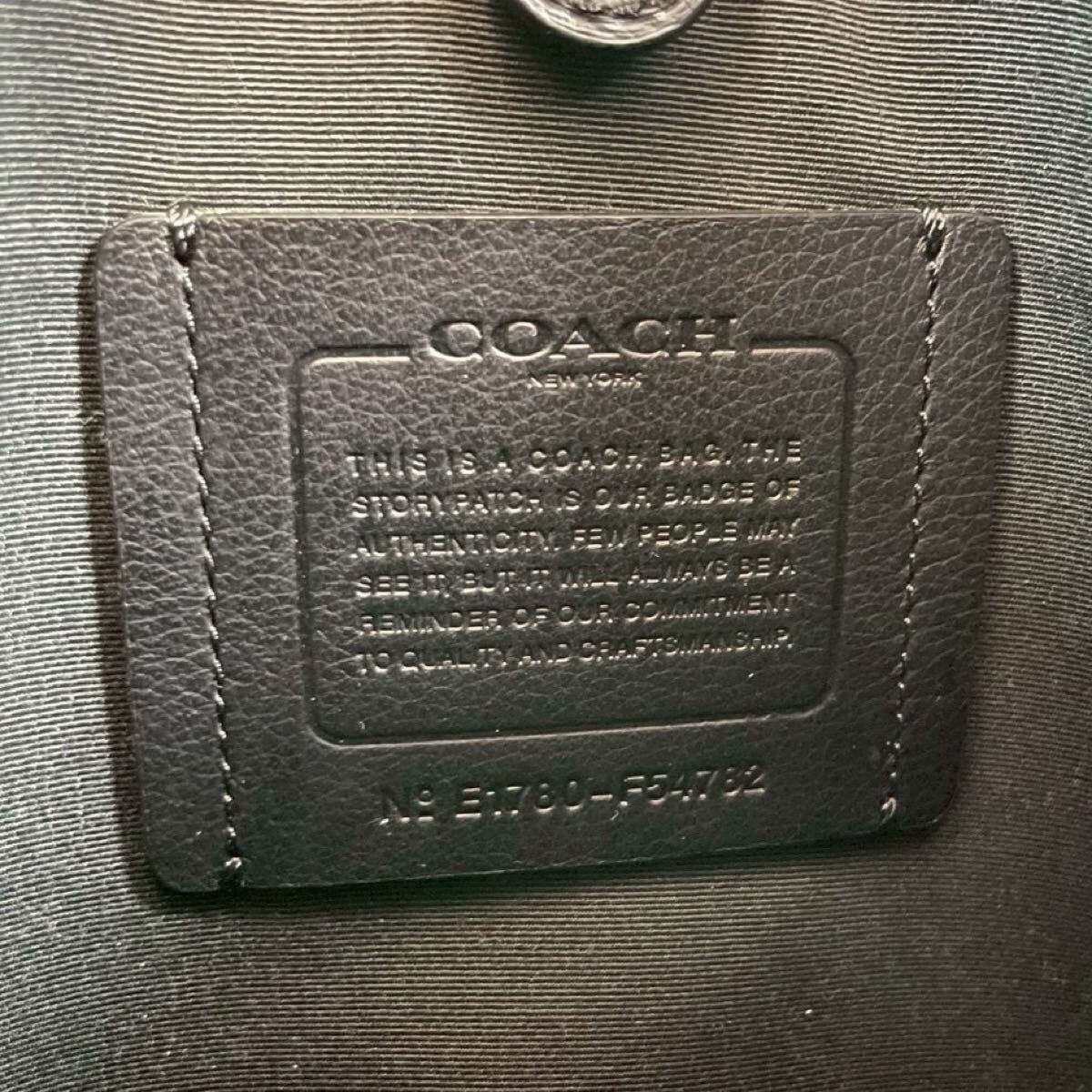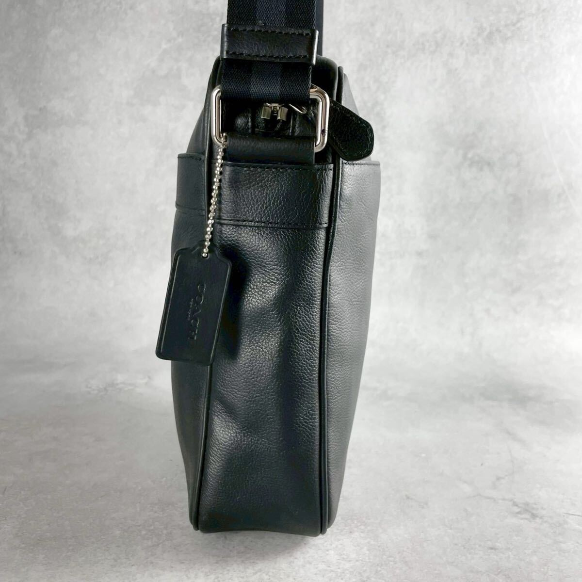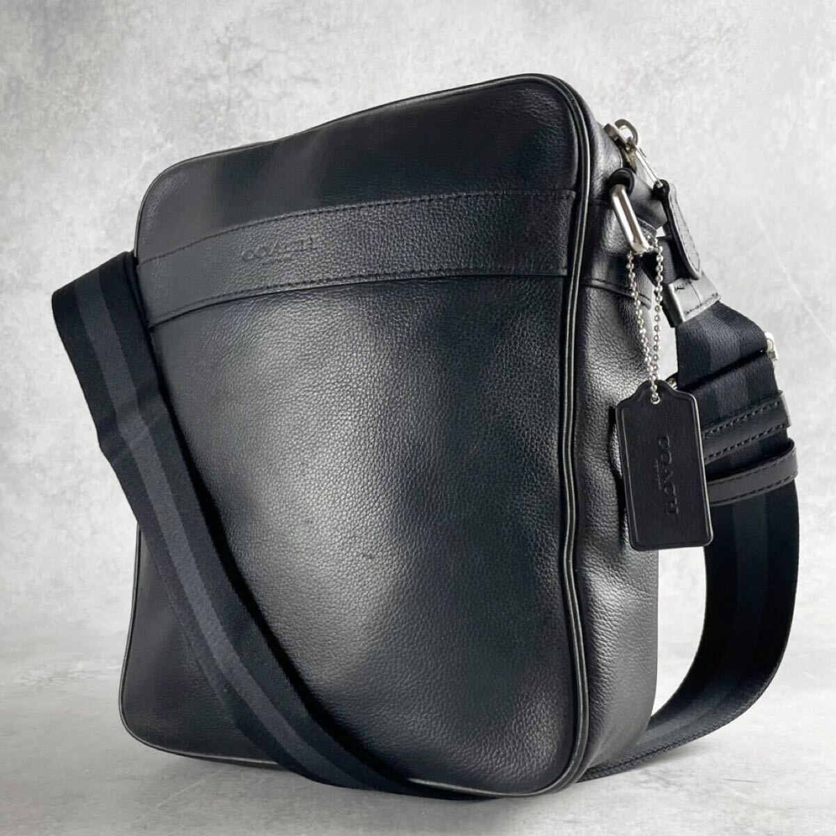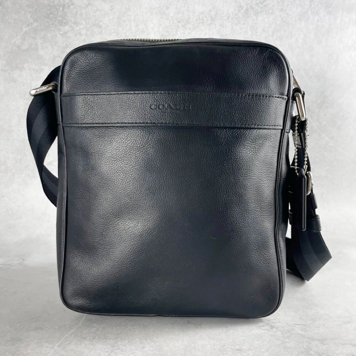 美品 コーチ ショルダーバッグ サコッシュ 斜め掛け クロスボディ メンズ ビジネス 黒 ブラック レザー シボ 本革 ロゴ型押し COACH