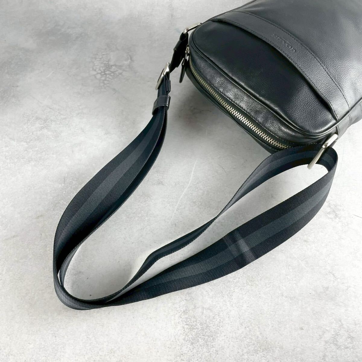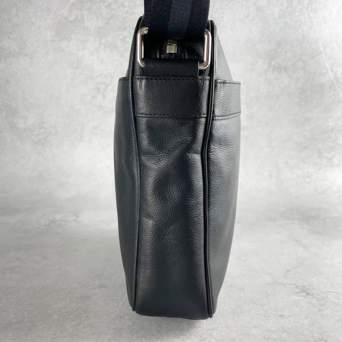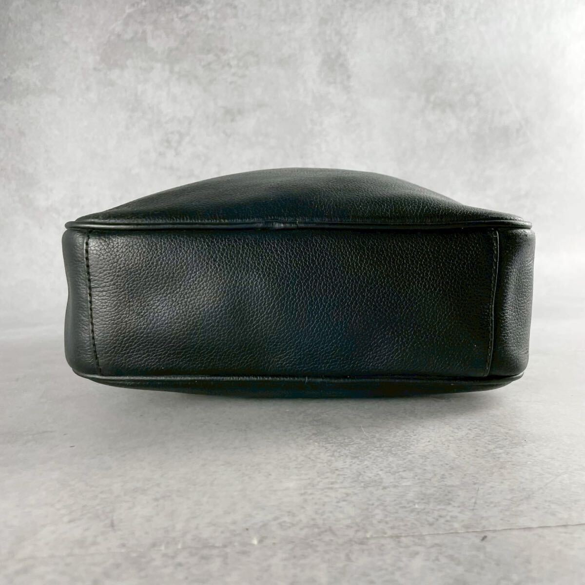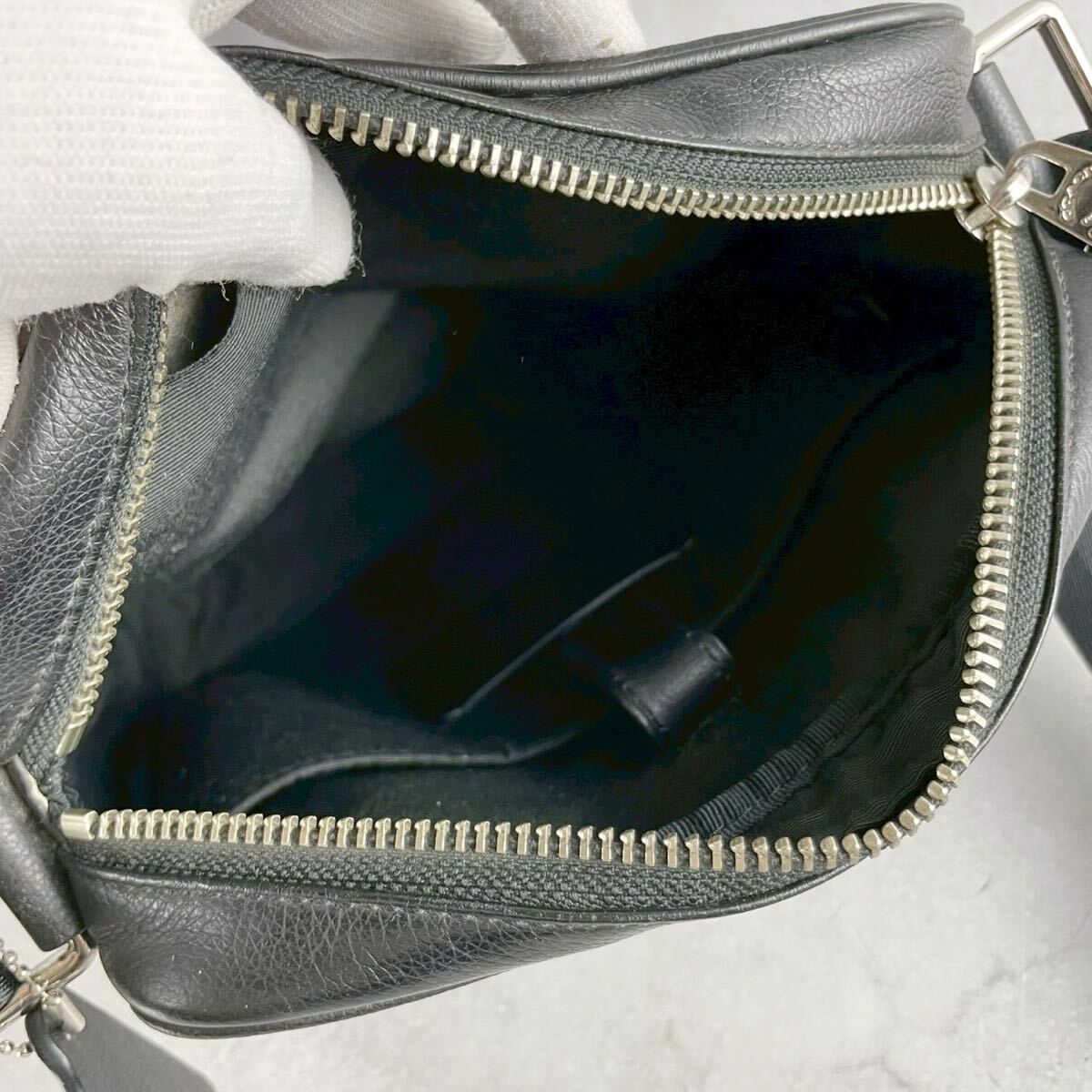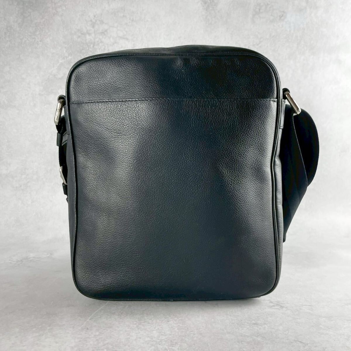 美品 コーチ ショルダーバッグ サコッシュ 斜め掛け クロスボディ メンズ ビジネス 黒 ブラック レザー シボ 本革 ロゴ型押し COACH
