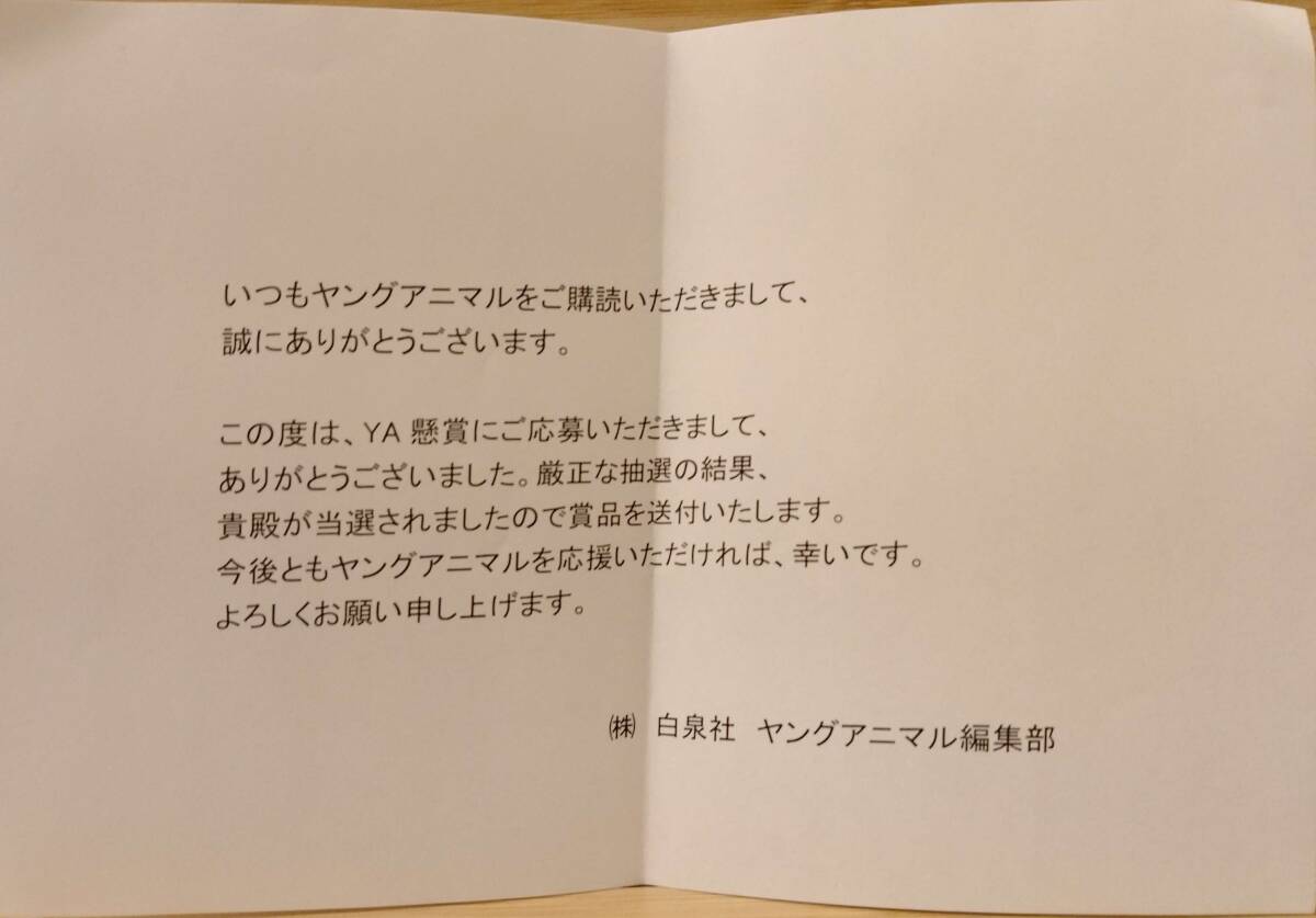 【507図書カード】白濱 美兎 ヤングアニマル 抽プレ当選品 当選通知書付