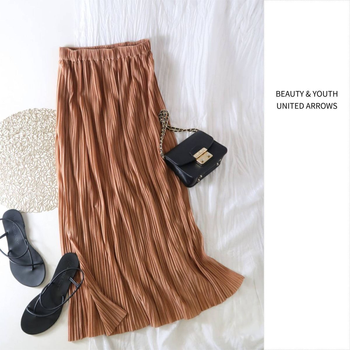 ユナイテッドアローズ/BEAUTY & YOUTH☆洗える ウエストゴム プリーツスリットスカート Mサイズ☆M-B 5113
