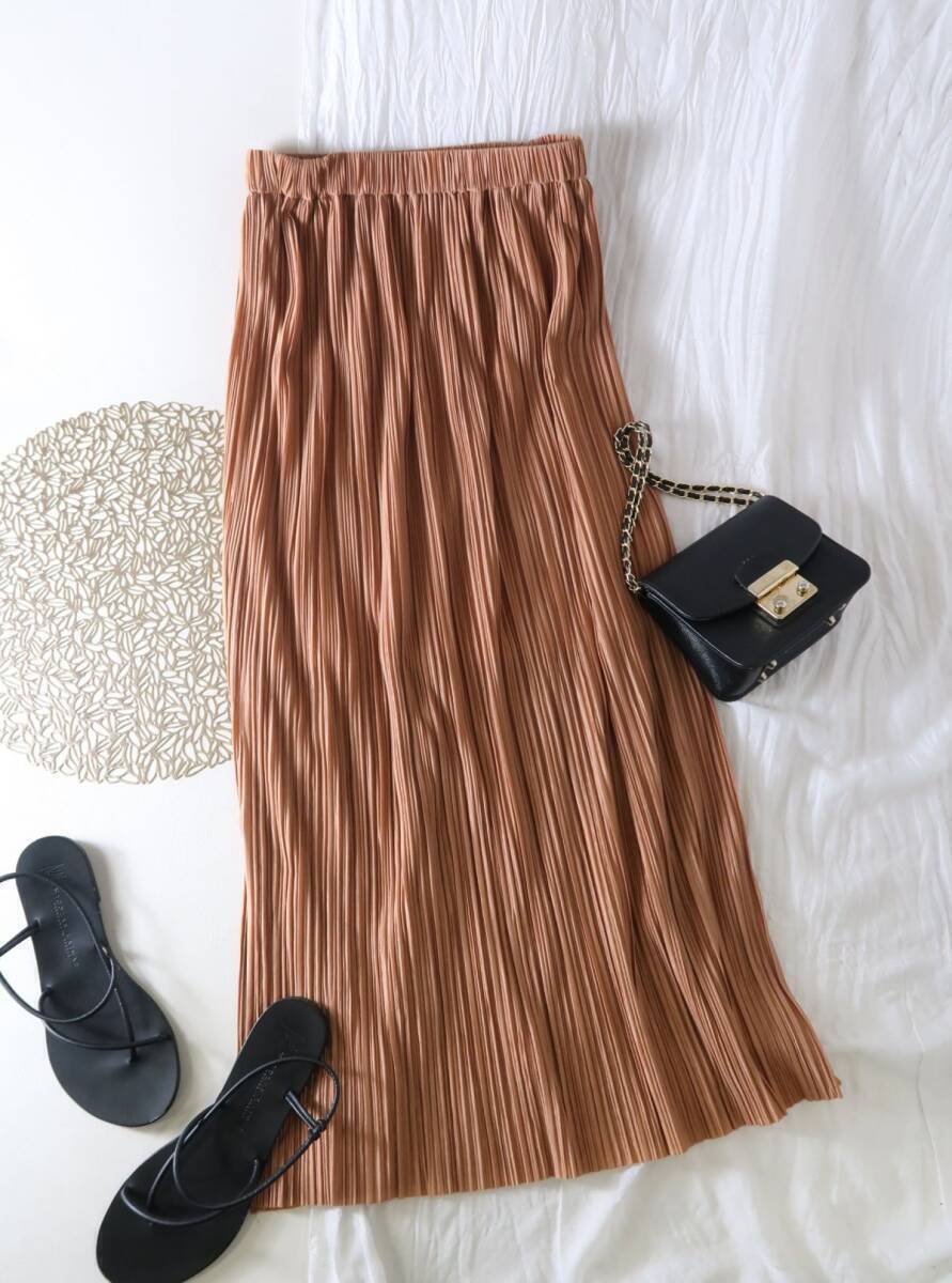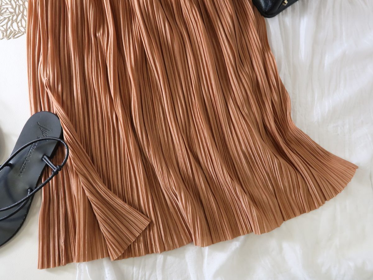 繊細なプリーツとサイドスリットが特徴のロングスカート。適度な上品さに、力の抜けたリラックスムードが旬のスタイルを叶えてくれます。イージーウエストと軽やかなポリエステル素材で着心地も良く、ご自宅での手洗いが可能な利便性も兼ね備えた一枚。デイリーに気兼ねなく、春夏シーズンを通してご活躍頂けるアイテムは、ワードローブの強い味方です。シャツ合わせで上品に、プレーンなカットソーを添えたシンプルな着こなしもおすすめ。