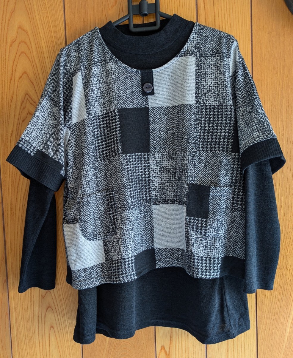 黒の長袖ハイネックとモザイク模様の半袖ベストは別々に着ることも出来、コーディネート次第でお洒落に楽しむことが出来ます。