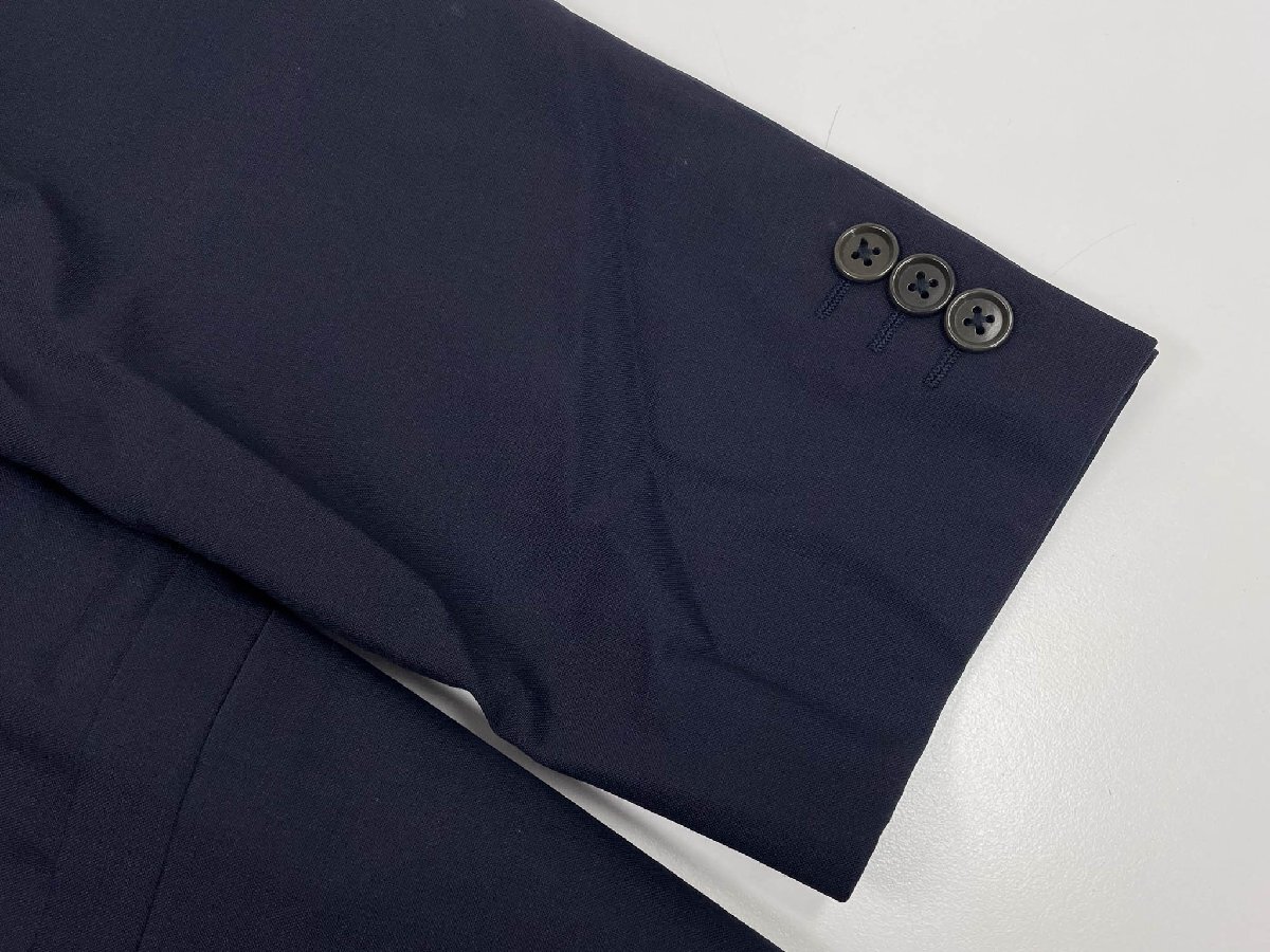 ・着用感、多少のスレ、多少のテカリ、ジャケット後身頃左ベント付近に約2ミリ程の小さな穴、スラックス左太もも横付近に約2ミリと約3ミリ程の穴がございます。ご理解の上ご購入下さい。