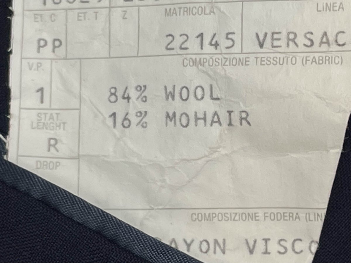 【GIANNI VERSACE ジャンニヴェルサーチ】2538VC モヘア混 ダブル4ボタン 織柄 スーツ (メンズ) 52/8R ネイビー系 イタリア製◇35RMS2647◇