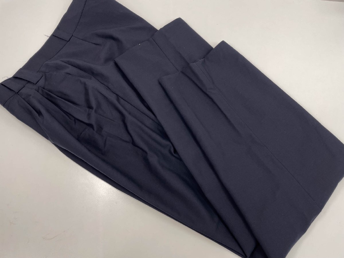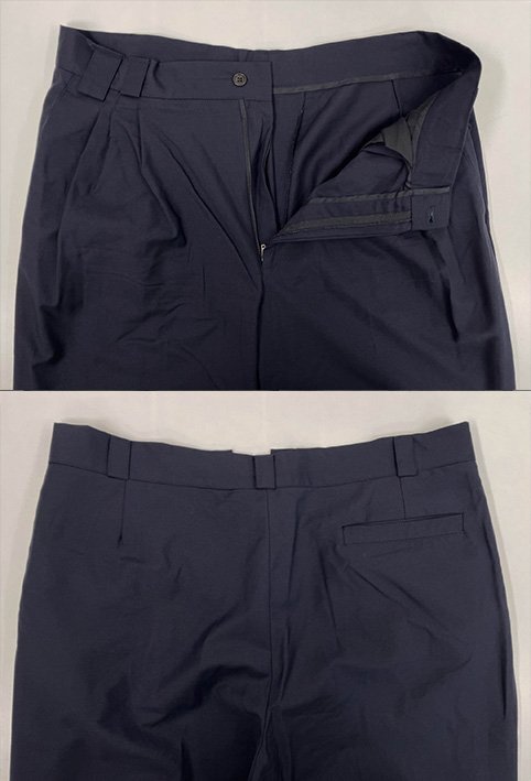 ・スラックス・・・ウエスト実寸約90センチ(4センチ出し、4センチ詰め可能)、股上約31センチ、渡り幅約38センチ、股下約85センチ、総丈約114センチ、裾幅約22センチ、シングル仕上げ(最大でプラス4センチ長くできます)
