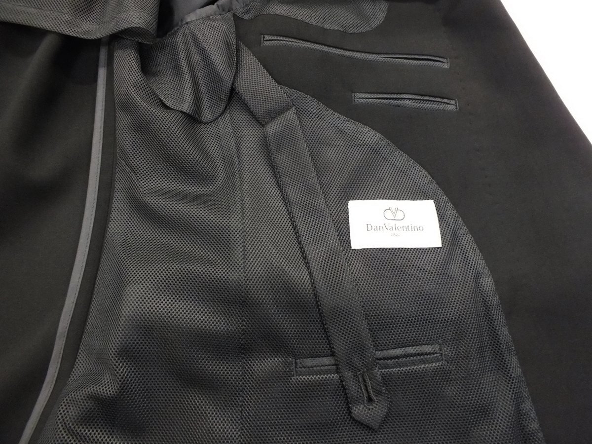 この製品はダン・バレンチノ社によりライセンスされ生産された品です。最大の特徴は、高級素材を使い、手間のかかる仕事、本台場パイピング等、惜しみも無く使ってハイクラスな製品に仕上がっていることです。 ブランド DanValentino (ダン ヴァレンチノ) シーズン:春夏 上着デザイン:ダブル4釦1掛け ノーベンツ スラックス:ワンタッグ 脛当て アジャスター付き(ウェスト調節が自由自在) 上着裏仕様:背抜き仕立て・夏は涼しさが際立つメッシュ裏・脇刺し・本台場・携帯電話ポケット付き 表素材:毛87/ポリエステル13 (ストレッチ加工・撥水加工・静電防止加工・防虫加工) 裏素材:胴裏ポリエステル100・袖裏ポリエステル100使用 サイズ:AB3 3元表示(胸回92・腰回82・身長160) 上着:着丈70・袖丈56.5・肩幅47.6・胴回り97 スラックス:ウエスト82・股上27・膝巾25・裾巾21.5 参考上代:68,000円 | ||||
