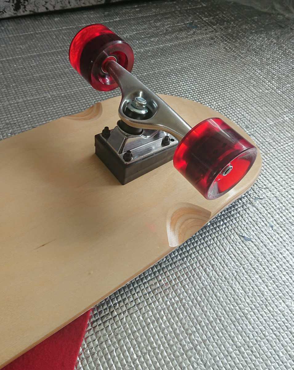 ■板をカスタマイズする上で 今流行はフロントにスラスターを搭載した時に リア(後)にカービングトラックを取り付けるのが流行っています 特フロントトラックの旋回がスムーズになる分 それに対応する後ろのトラックの反応がカービングトラックの方が旋回角度が広い分スムーズに反応してくれます