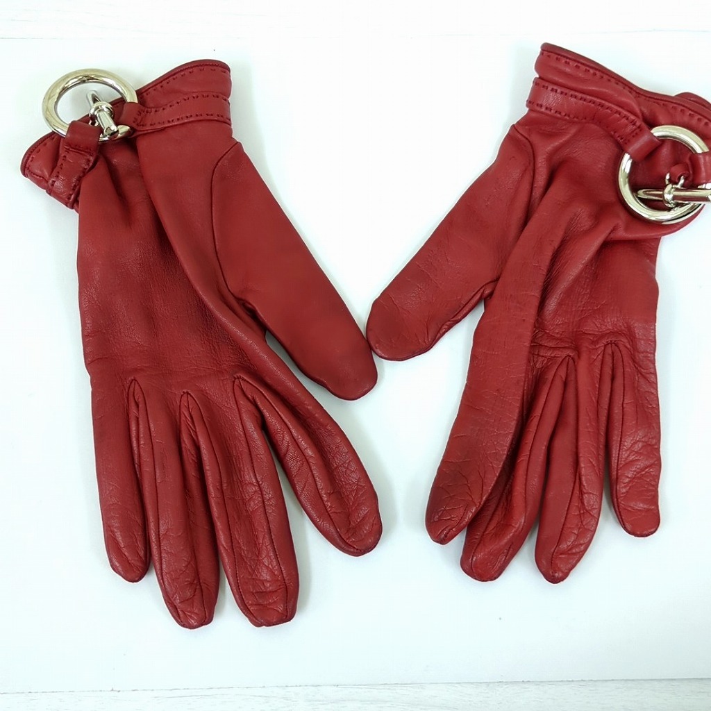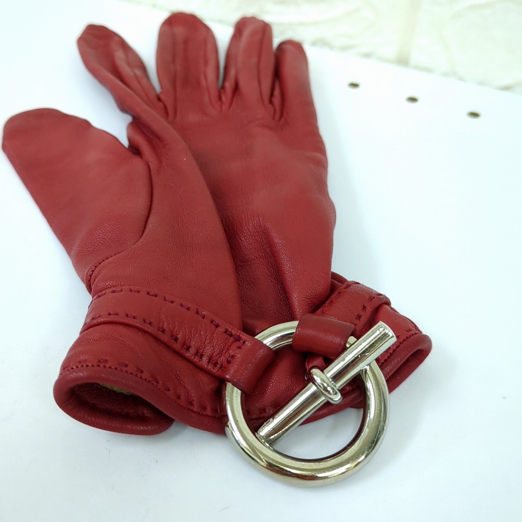1006-6oji10395O ヘルメス レザー グローブ レッド シルバー金具 サイズ 7.5 レディース 【コンディション】 変色や使用感があります。 中古品ですので写真の状態をよくご覧ください。 【サイズ】 表記サイズ:7.5 測定サイズ:縦約22.5cm、横約13cm 多少の誤差はご了承ください。 【付属品】 なし
