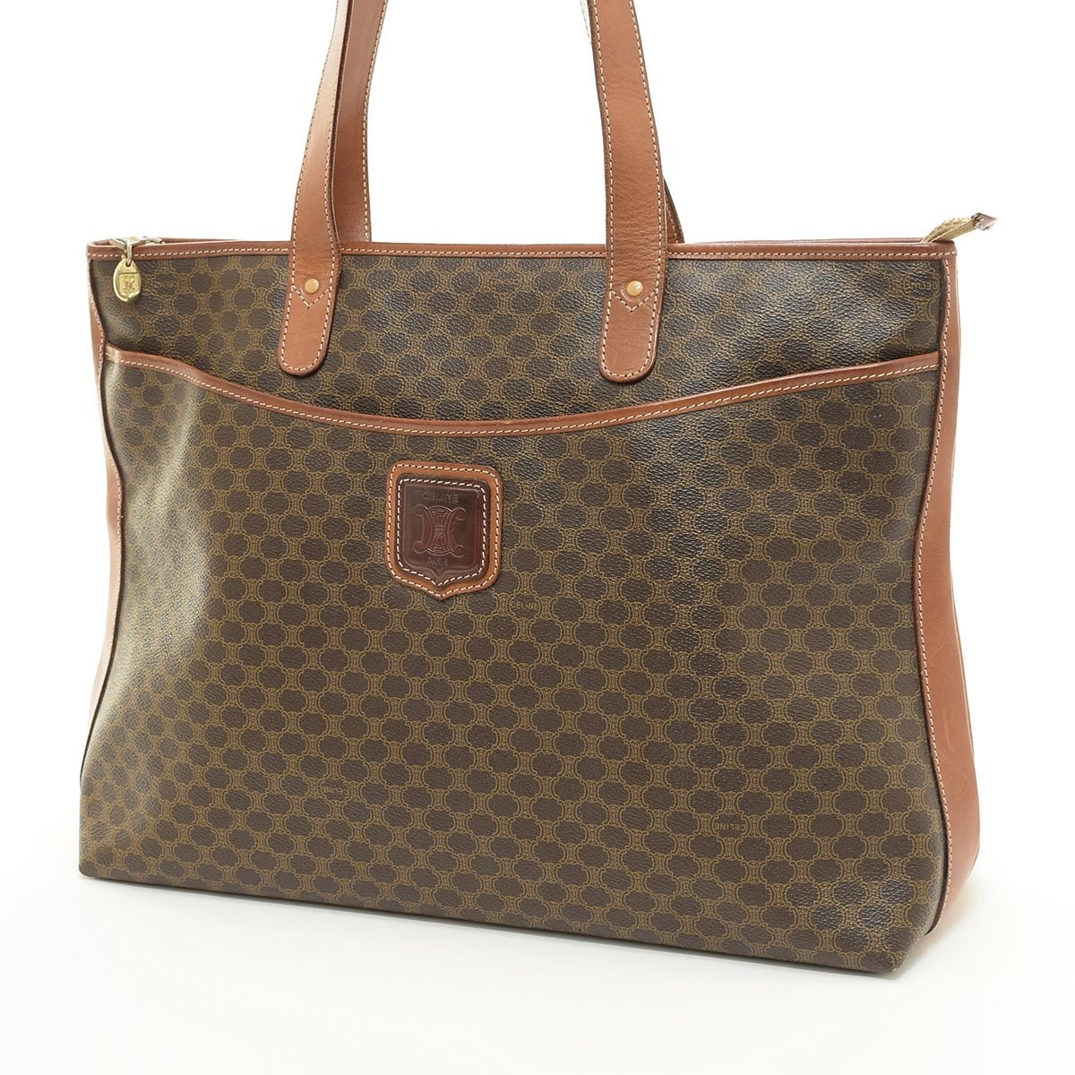 □525478 CELINE セリーヌ トートバッグ マカダム柄PVC レディース ブラウン