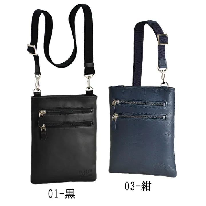 ソフトな牛革を使ったBLAZER CLUB 薄マチショルダーバッグ。高品質な日本製メンズバッグです。柔らかい本革素材をふんだんに使用した表情が魅力的。縦にB6サイズを収納可能、体にフィットする本体が使いやすく、ジャケット等の上着の下にも馴染むので海外等の旅行先で活躍する防犯性にも富んだ紳士用鞄。前のジッパーポケットにはパスポートも入るちょうど良いサイズ。色もブラックで使いやすいく文庫本、財布などを入れてちょっとした外出にお薦めのメンズバッグです。